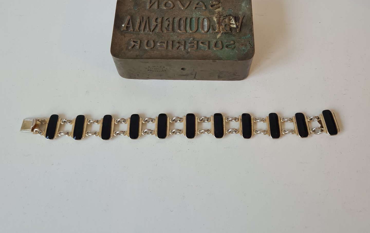 Armbånd i forgyldt sterlingsølv og sort emalje af Volmer Bahner