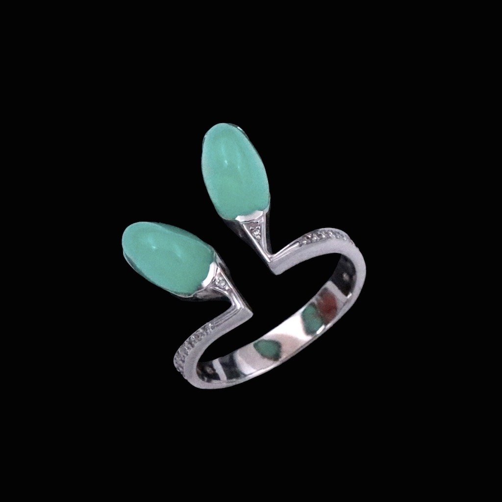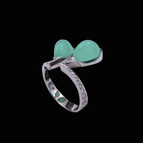 Boy Johansen - Denmark. 18k Gold Ring with Chrysoprase and Diamonds.
