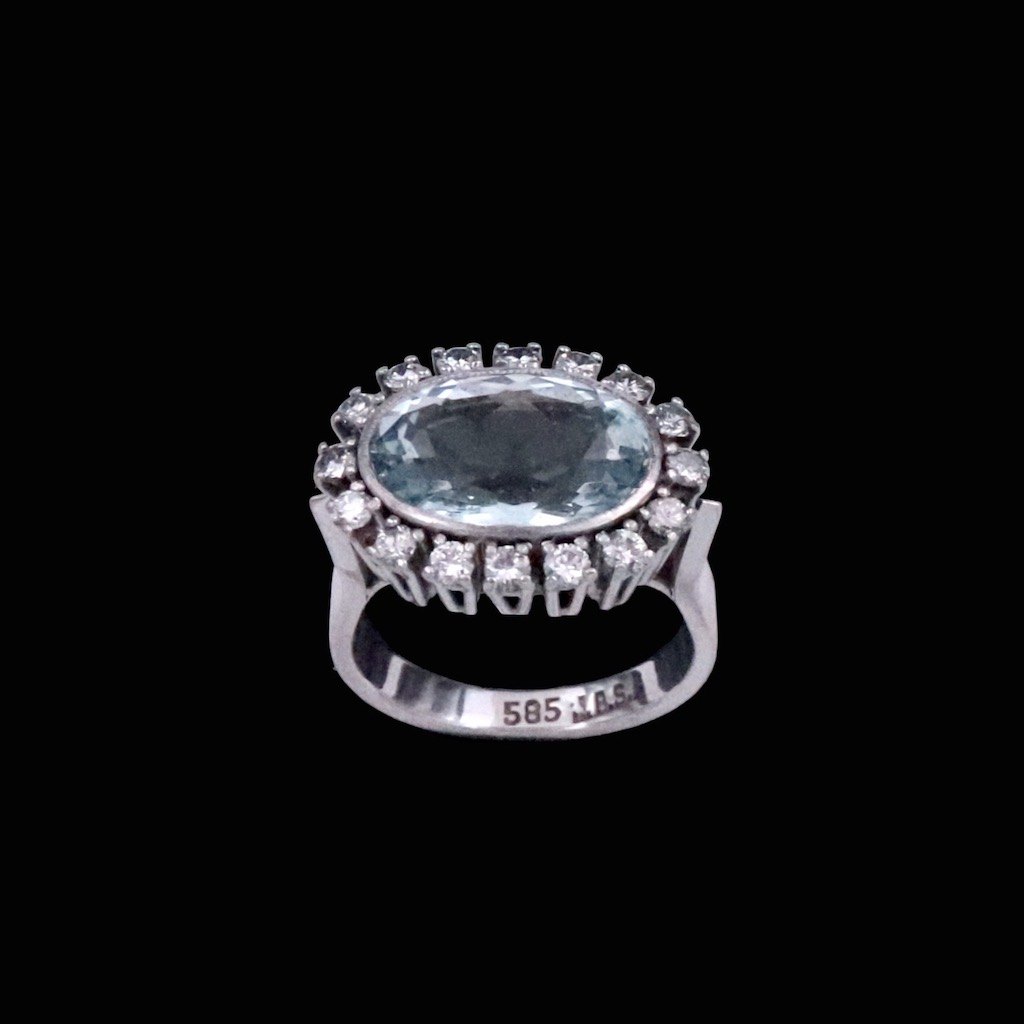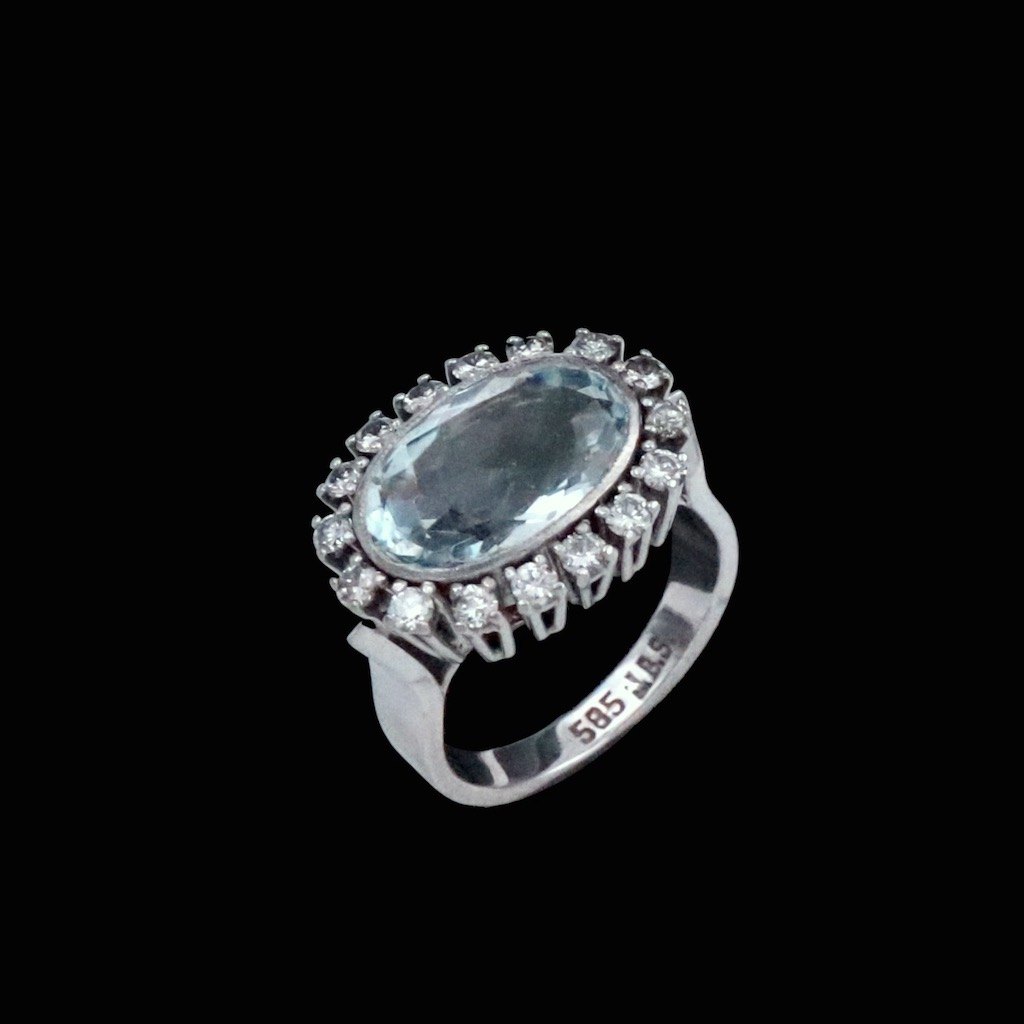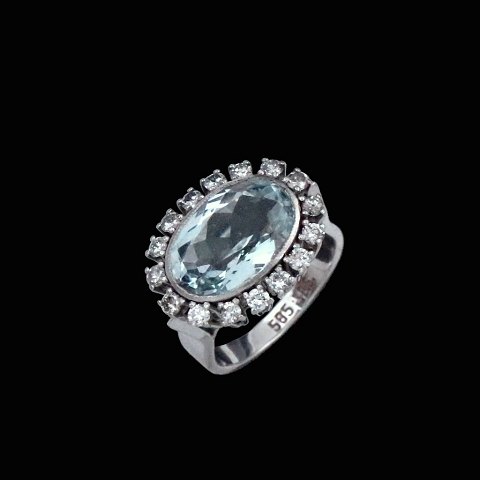 J. Bjerring Sørensen. 14k White Gold Ring with Aquamarine and Diamonds.