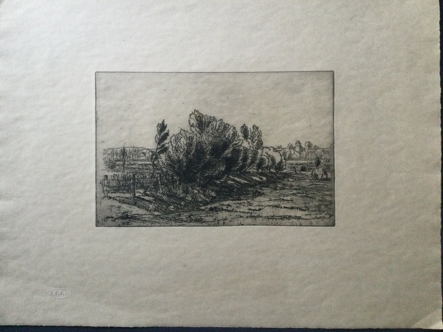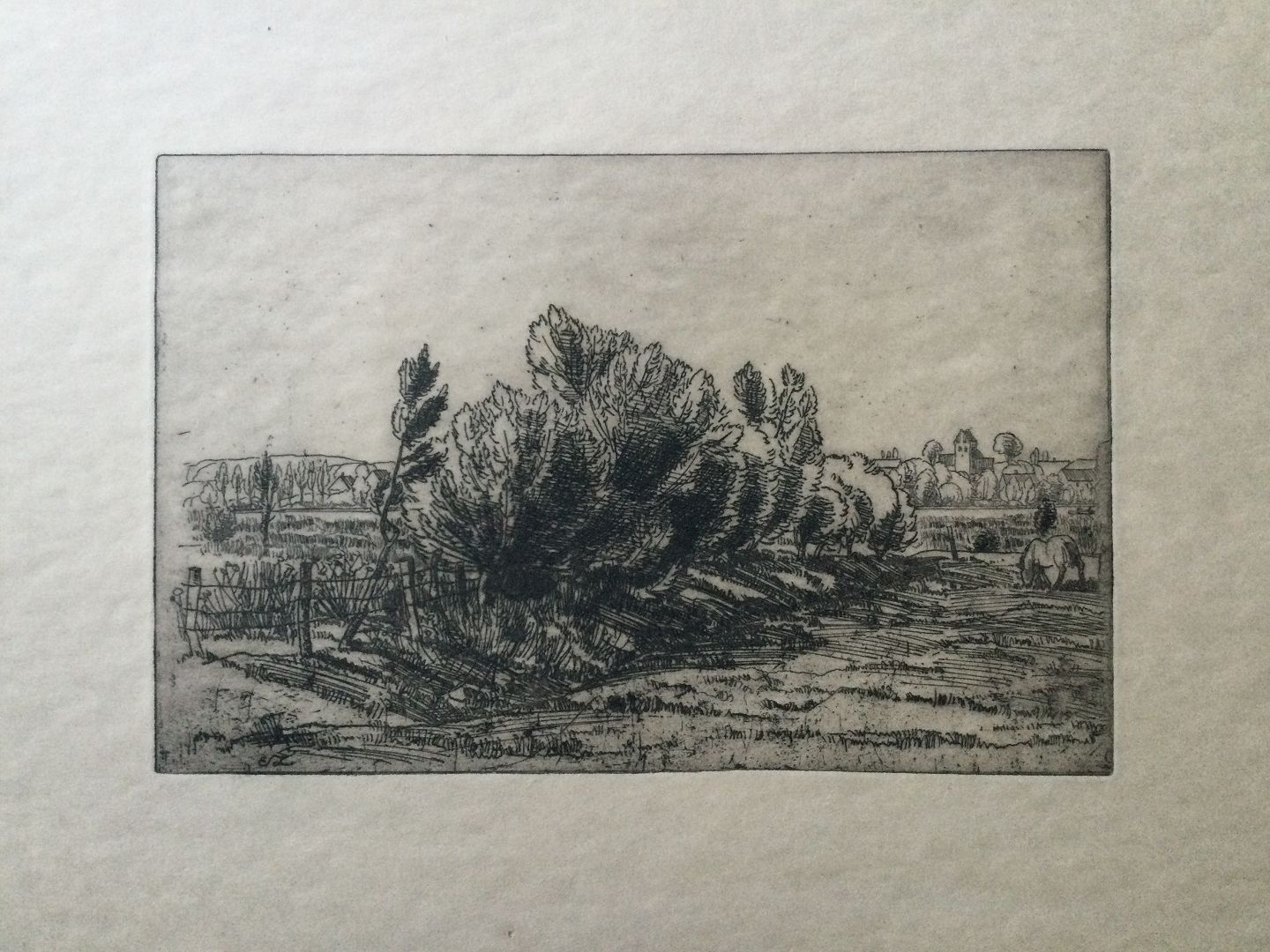 Radering af Ernst Zeuthen 1927 - Piletræer ved Gentofte Sø.