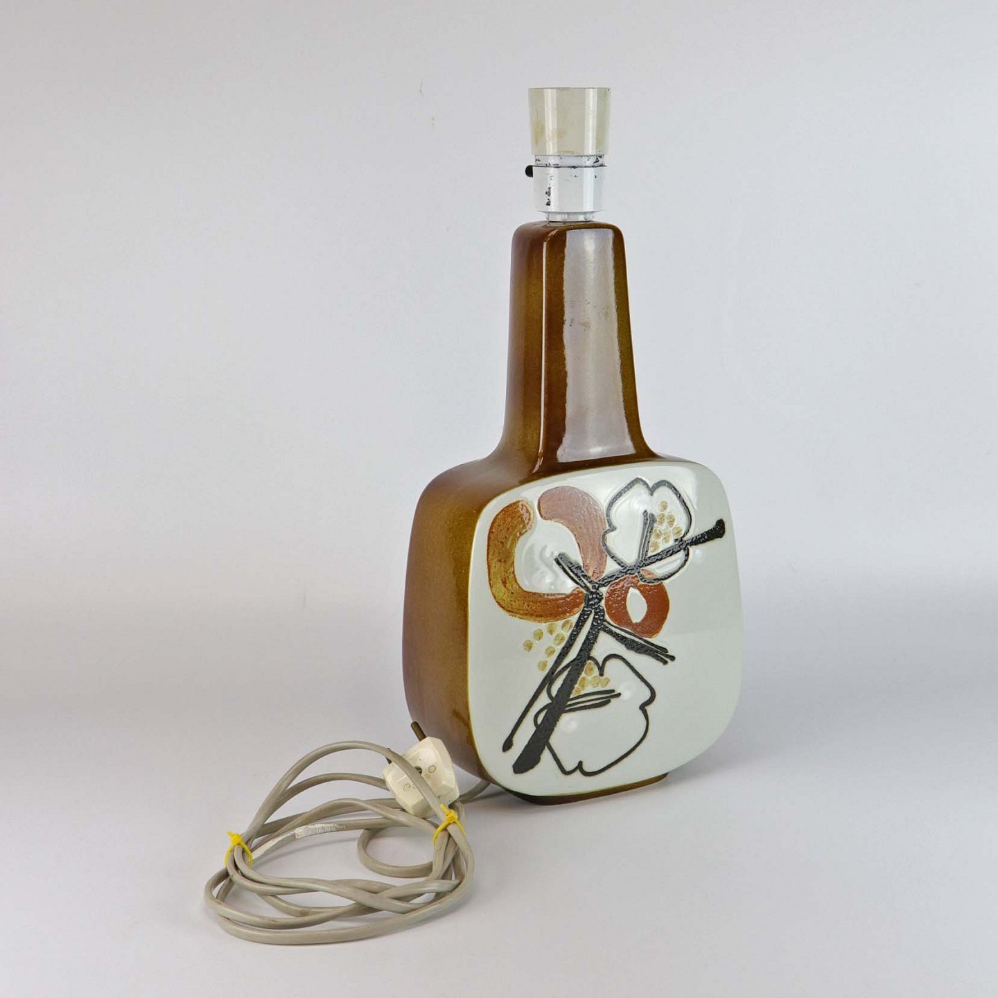 Bordlampe i fajance med abstrakt mønster i brune og gyldne farver no 673/3799