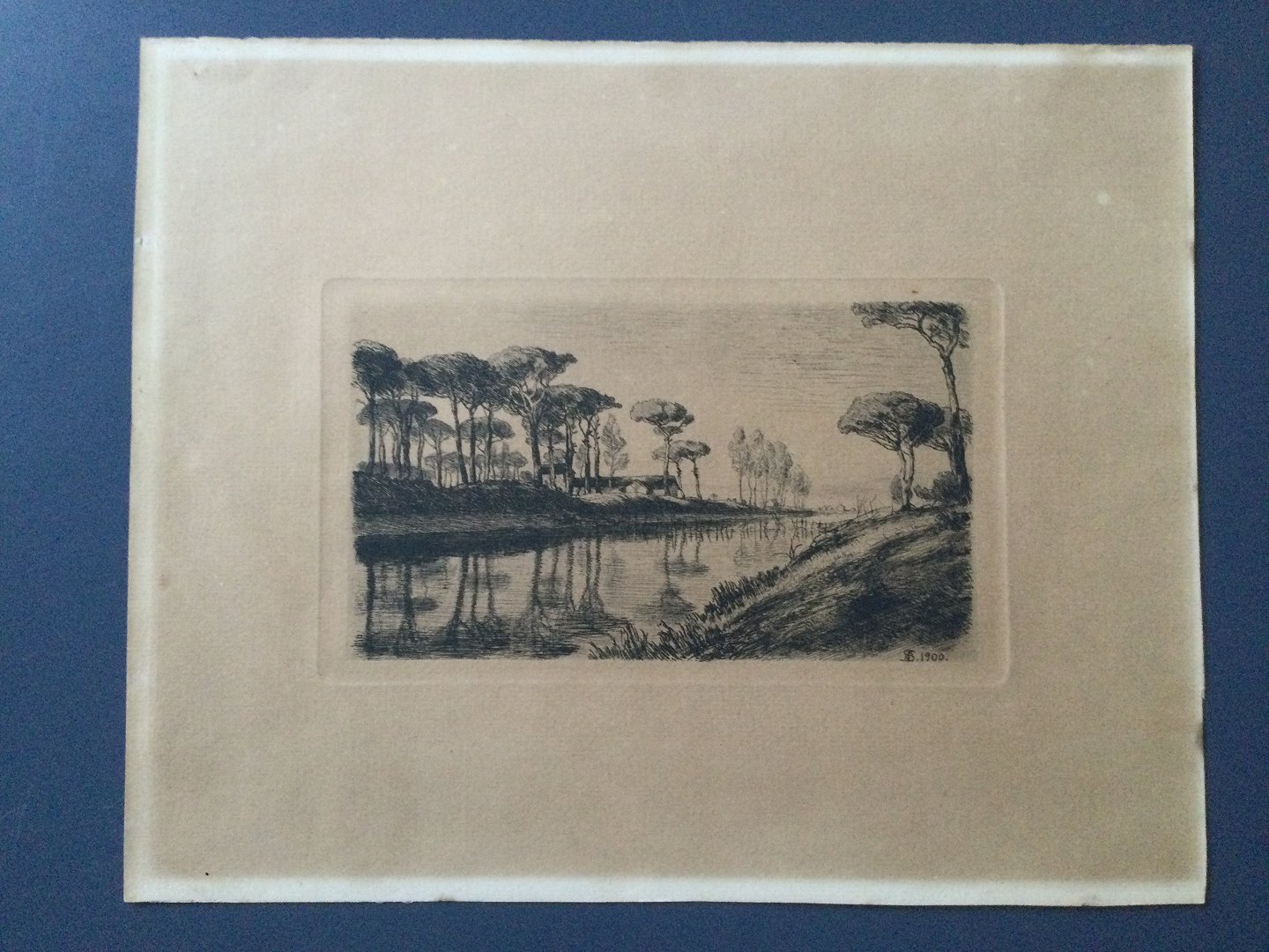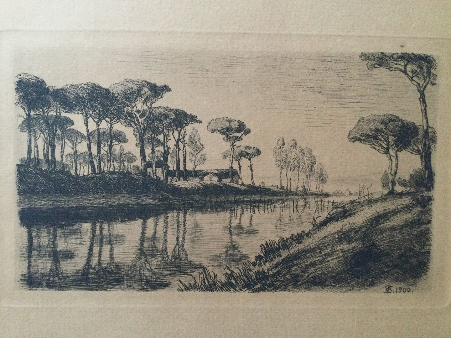 Radering af Niels Skovgaard 1900 - Pinjeskoven ved Classé.