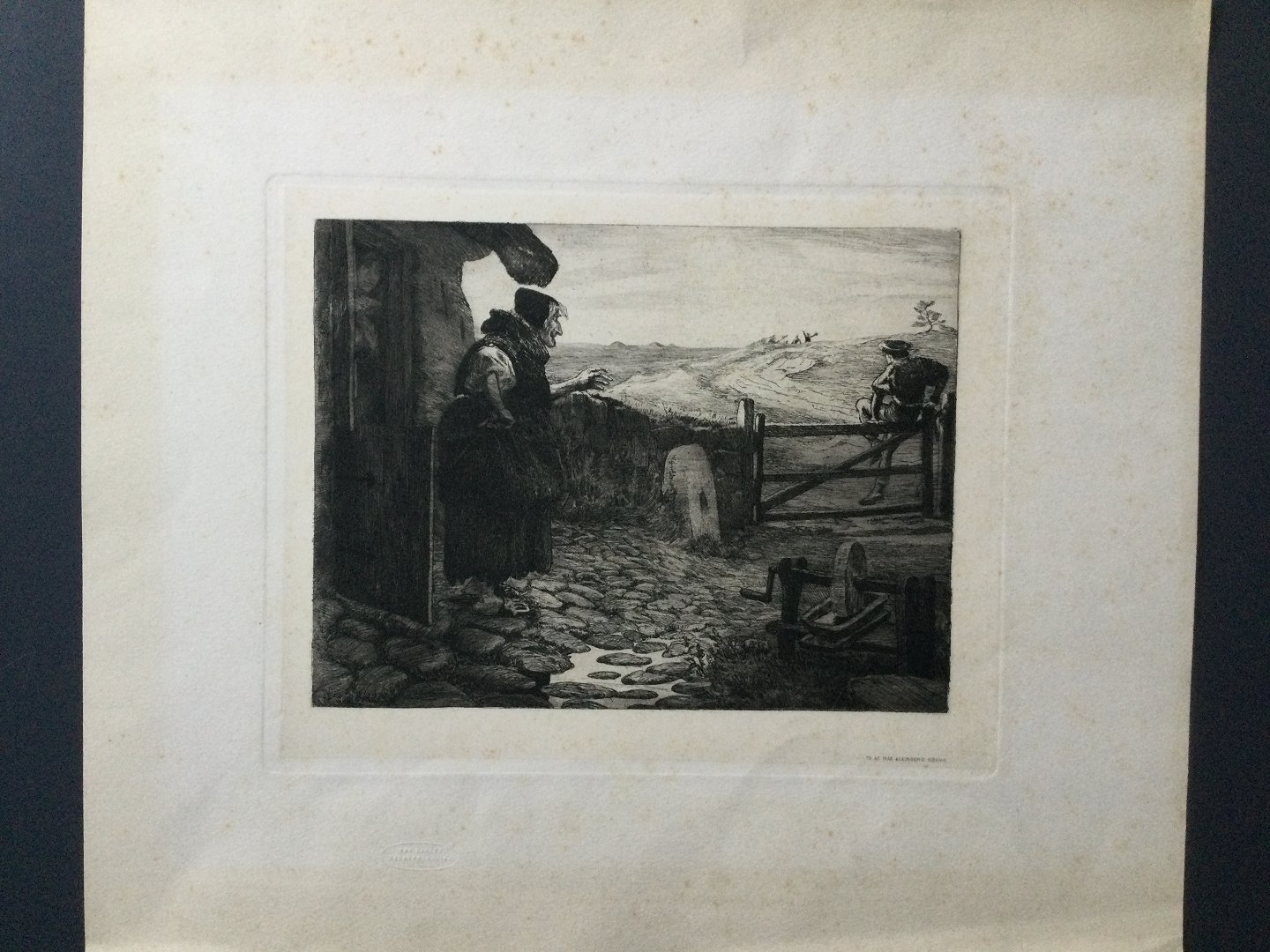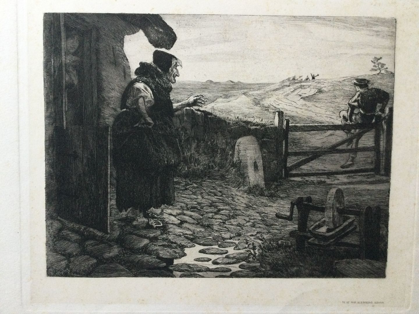 Radering - Hans Nikolaj Hansen - 1897 - De tre Skalke "Flugten om Morgenen".