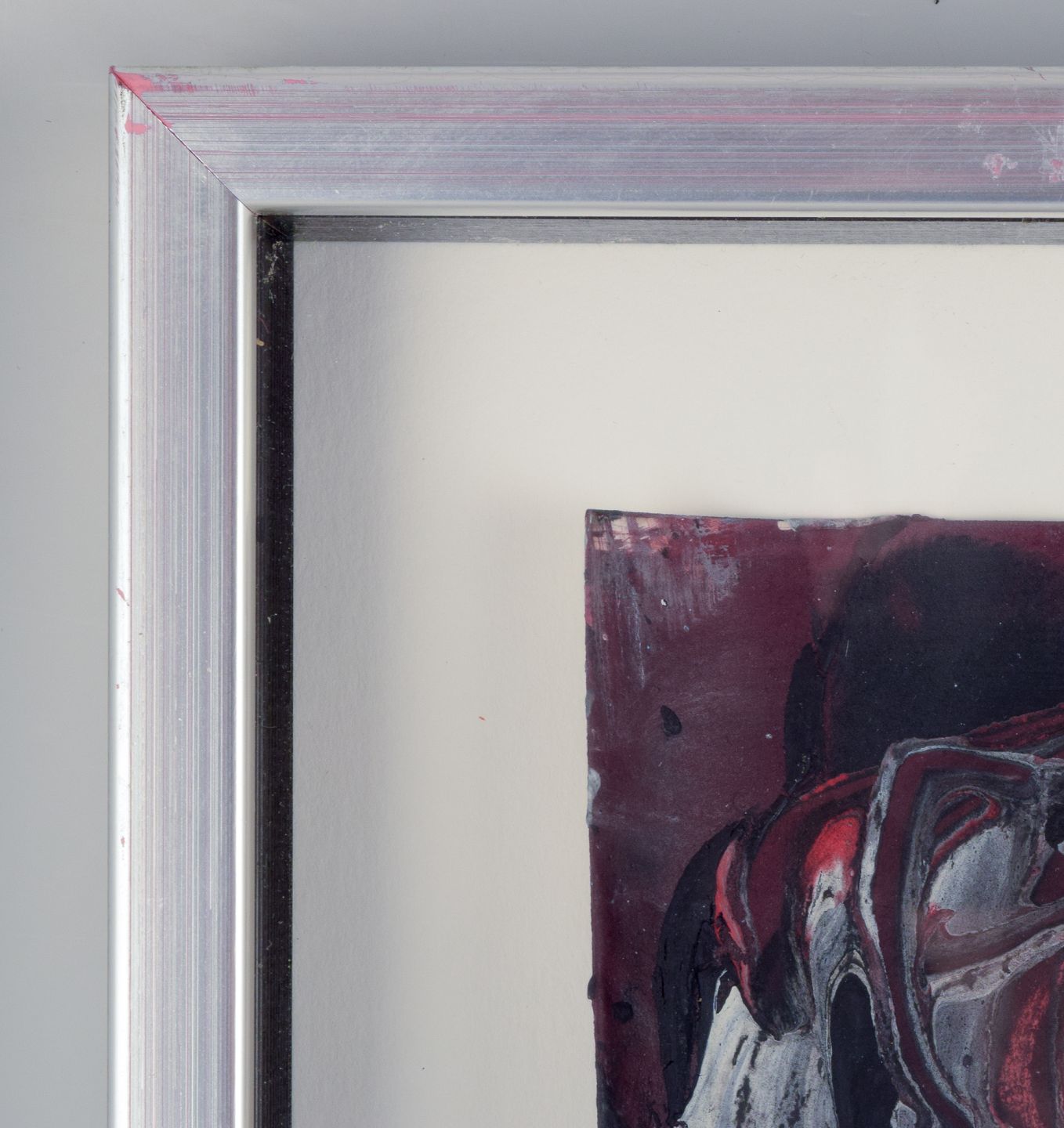 Billedet er bag glas i en ramme med distancelister.