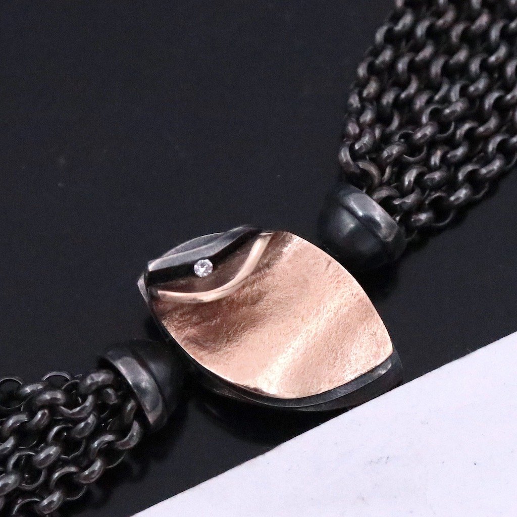 Richard Aaboe. Halskæde i sterlingsølv med guld og brilliant.