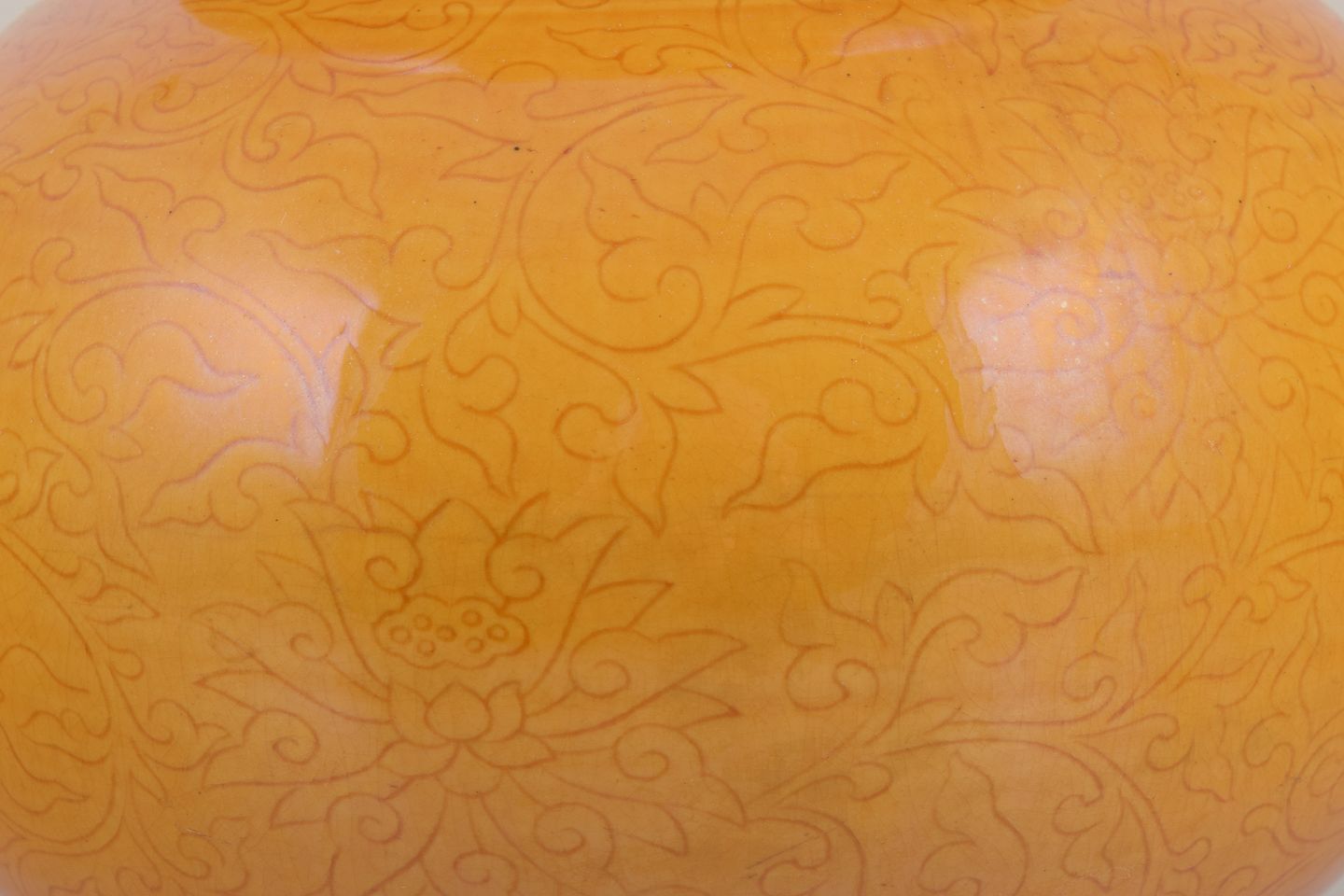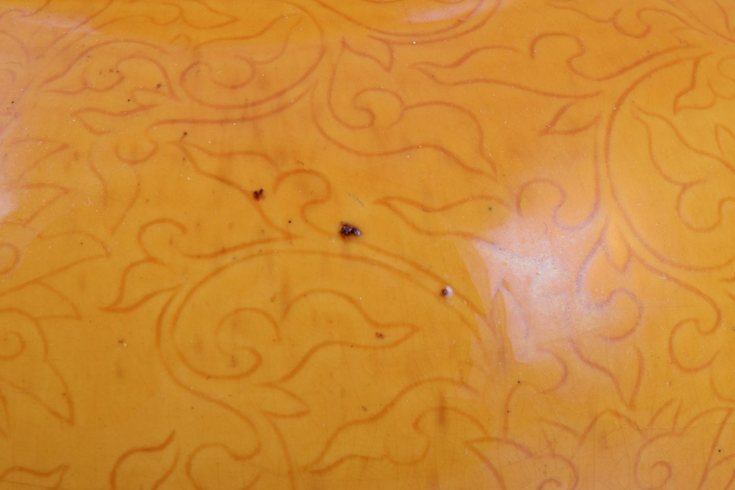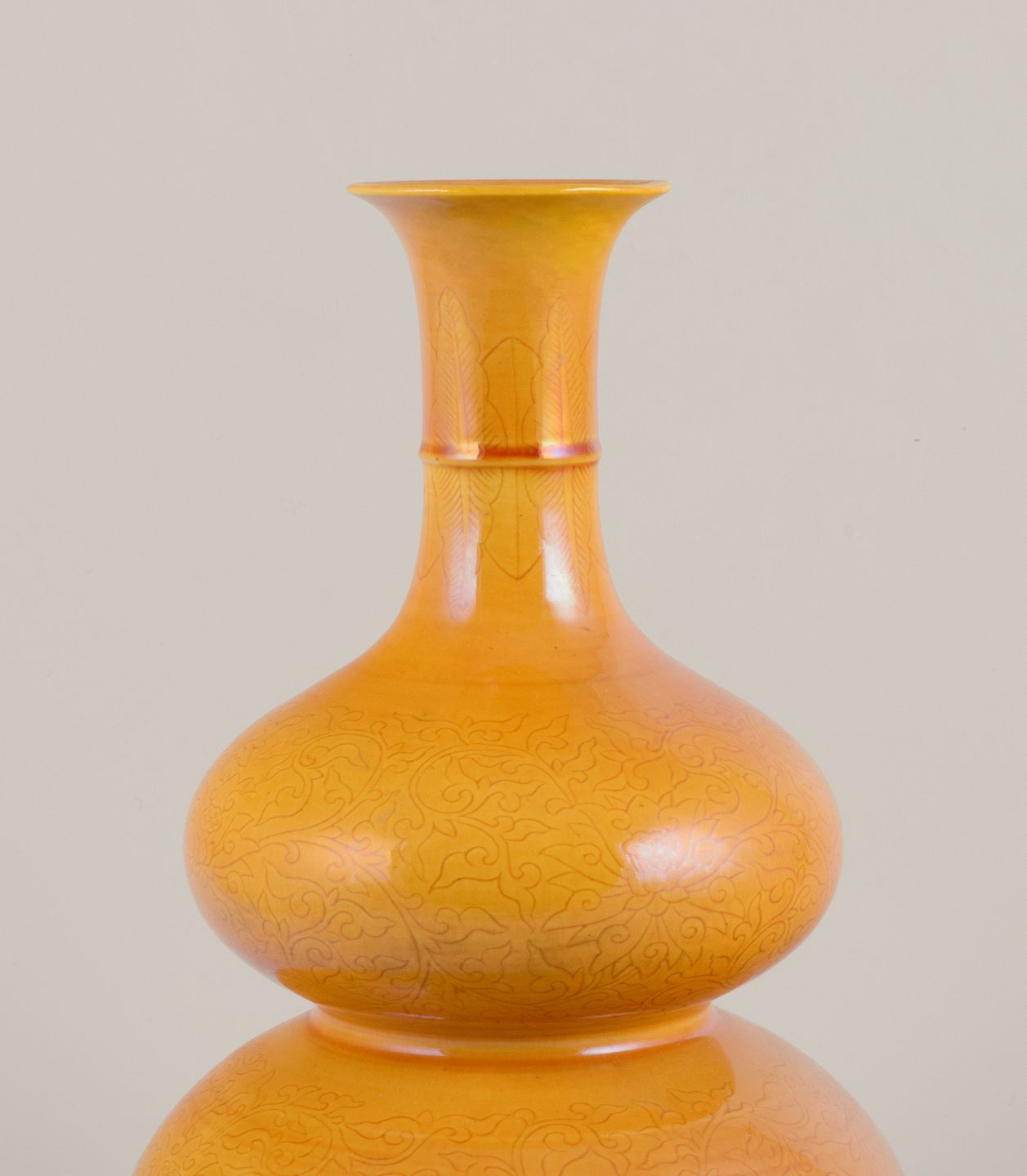 Okkergul glasur, klassisk kinesisk blomstermønster.