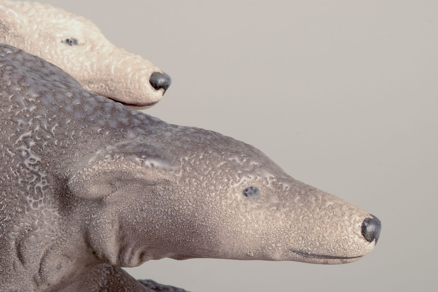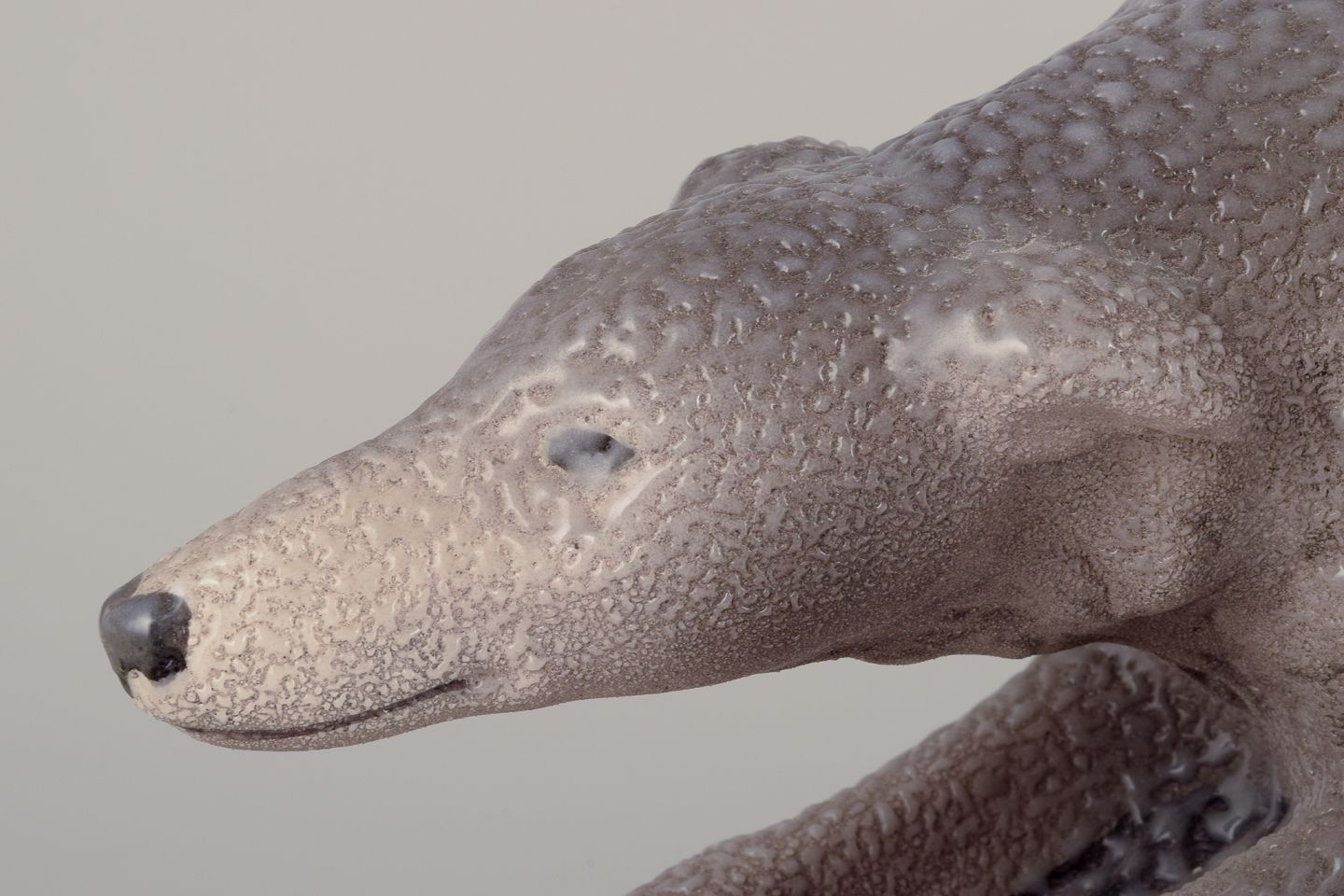 Kolossal keramikskulptur af to løbende greyhounds.