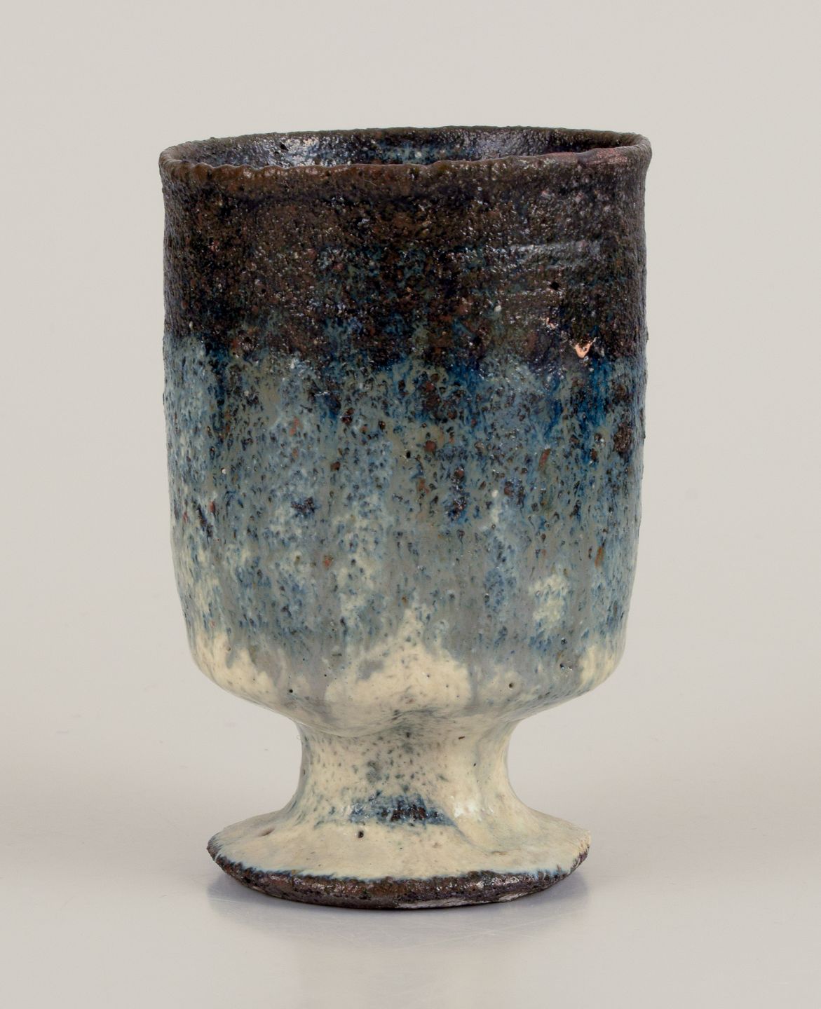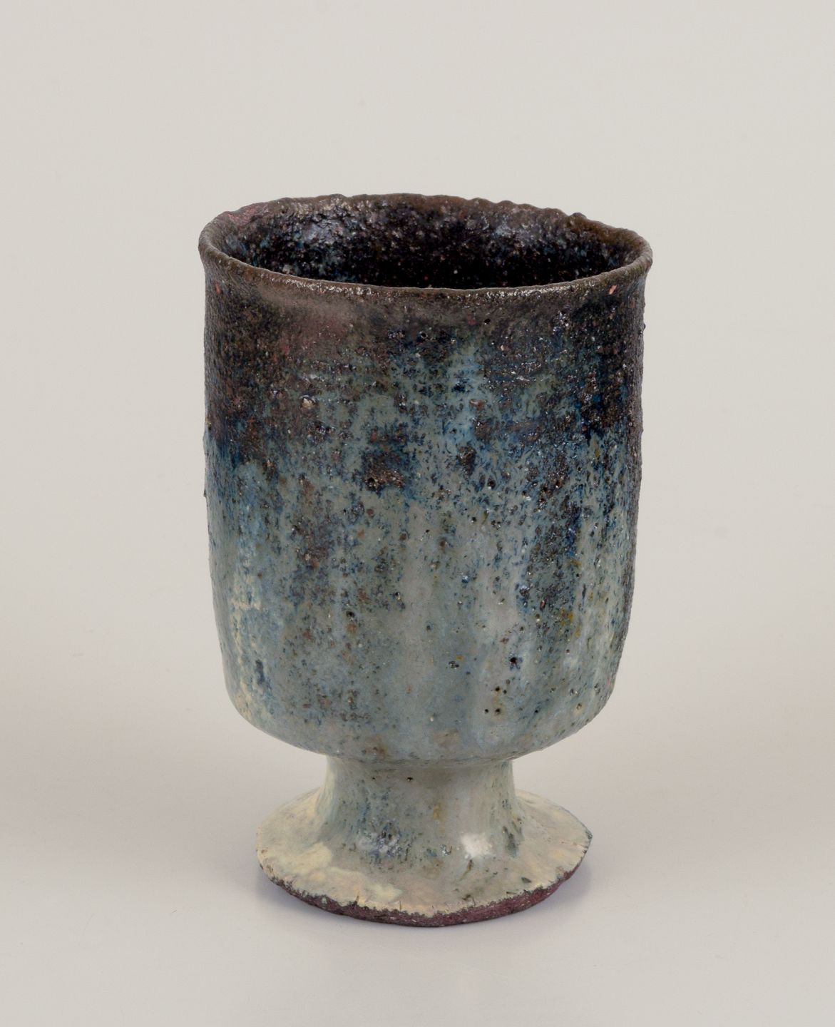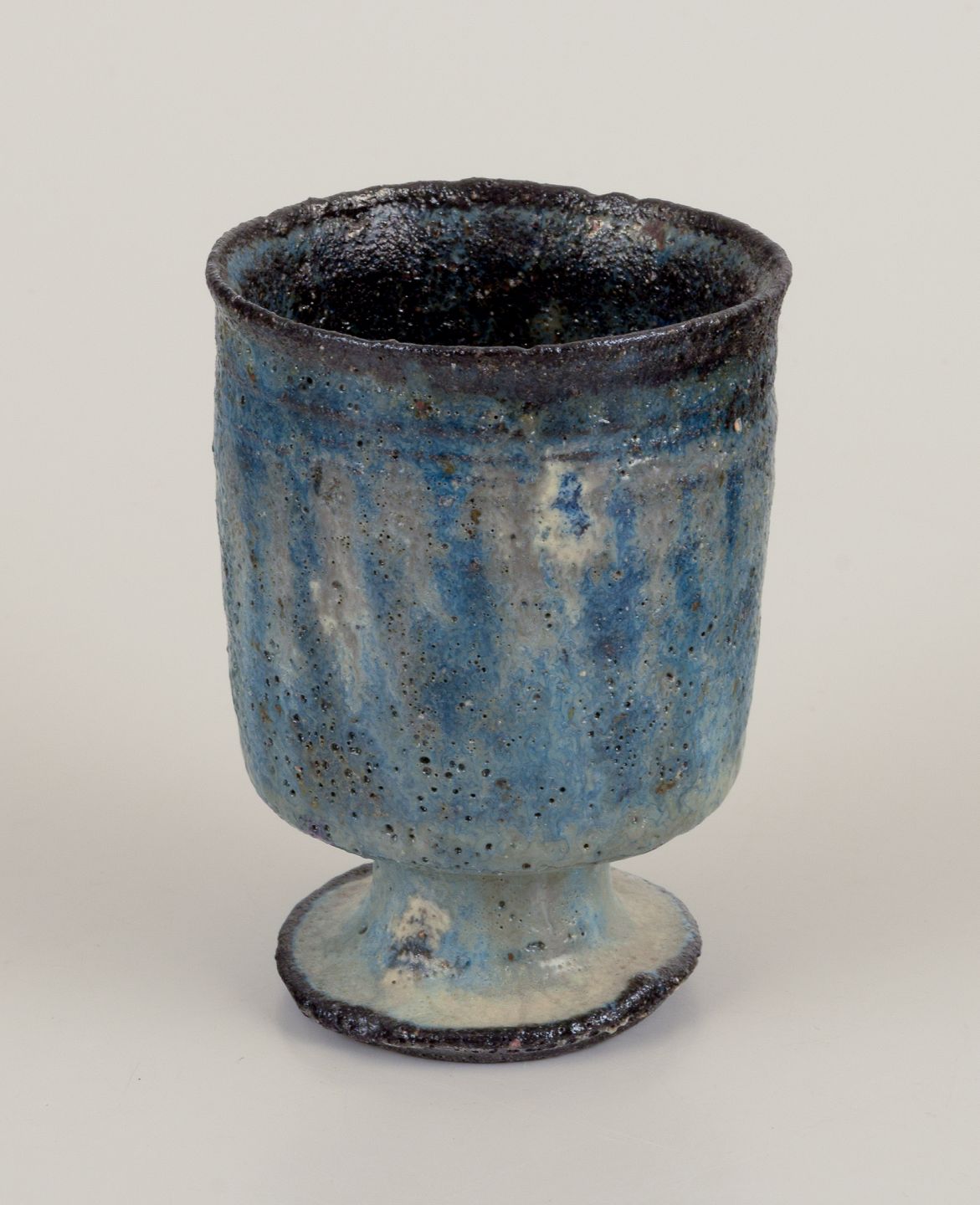 To bægre i keramik, raku teknik, flydende lava glasur i blågrå toner.