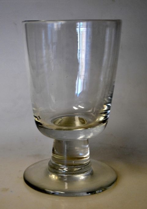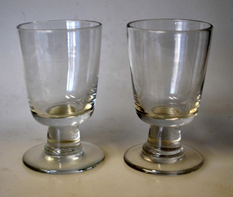 Samling af 10 antikke drikkeglas. 19. årh. Klart glas med tyk stilk. Højde: 12 cm.