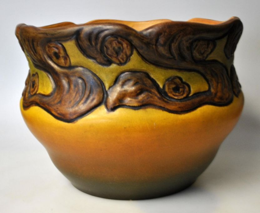 P. Ipsens Enke, urtepotte med ornamenter. no. 569. 1903. København, Danmark. Keramik. Stemplet. H.: 19 cm. Dia: 23 cm.