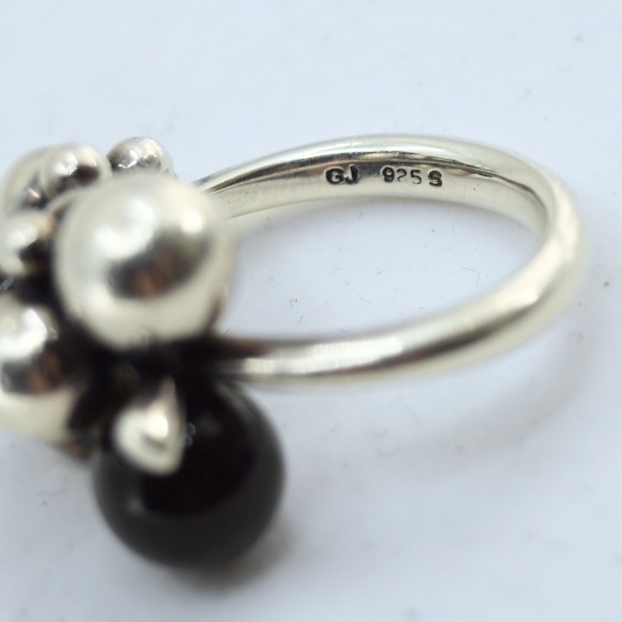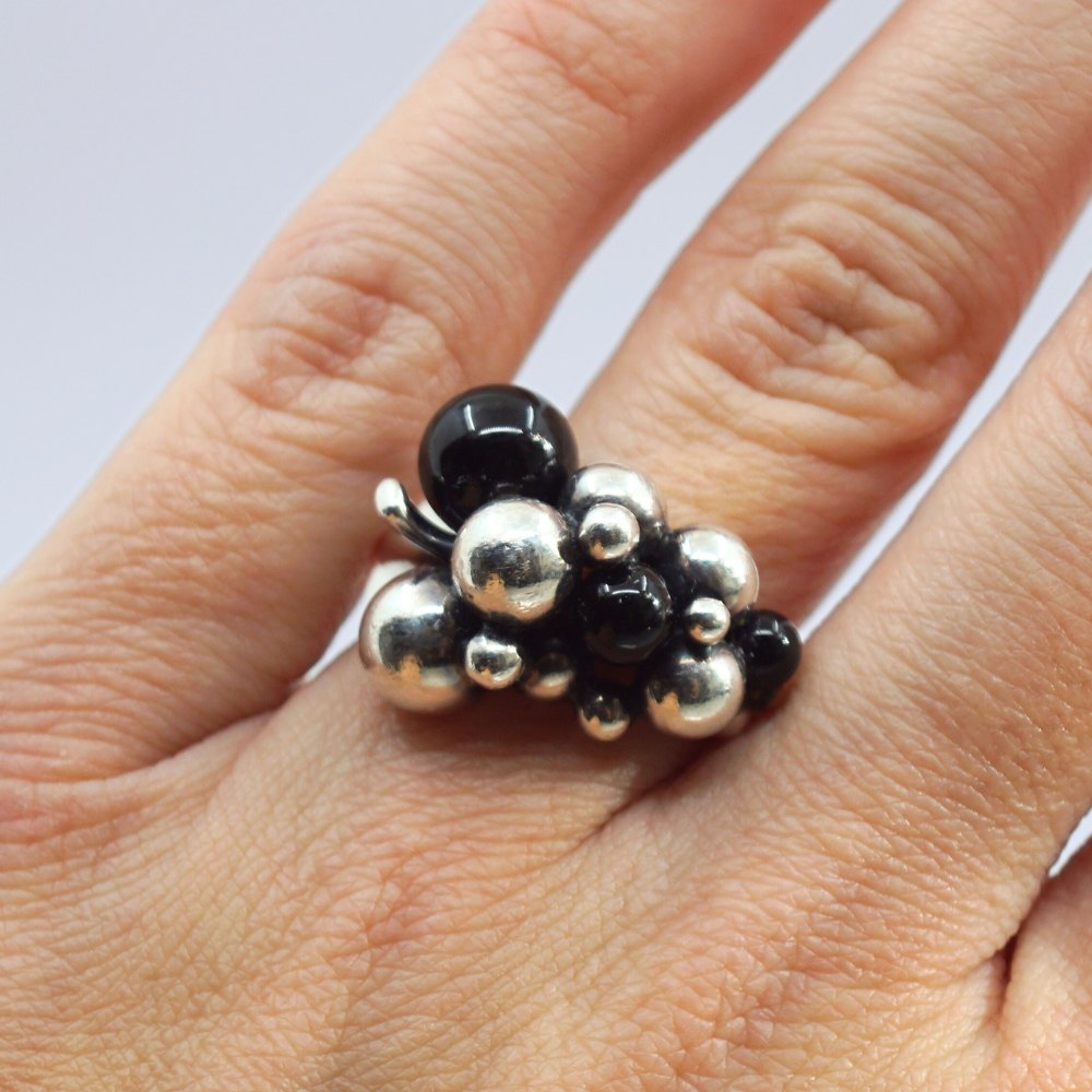 Georg Jensen; Moonlight Grapes ring i sterlingsølv med sorte onyx kugler. Ring str. 52.