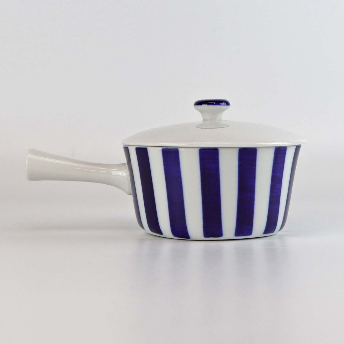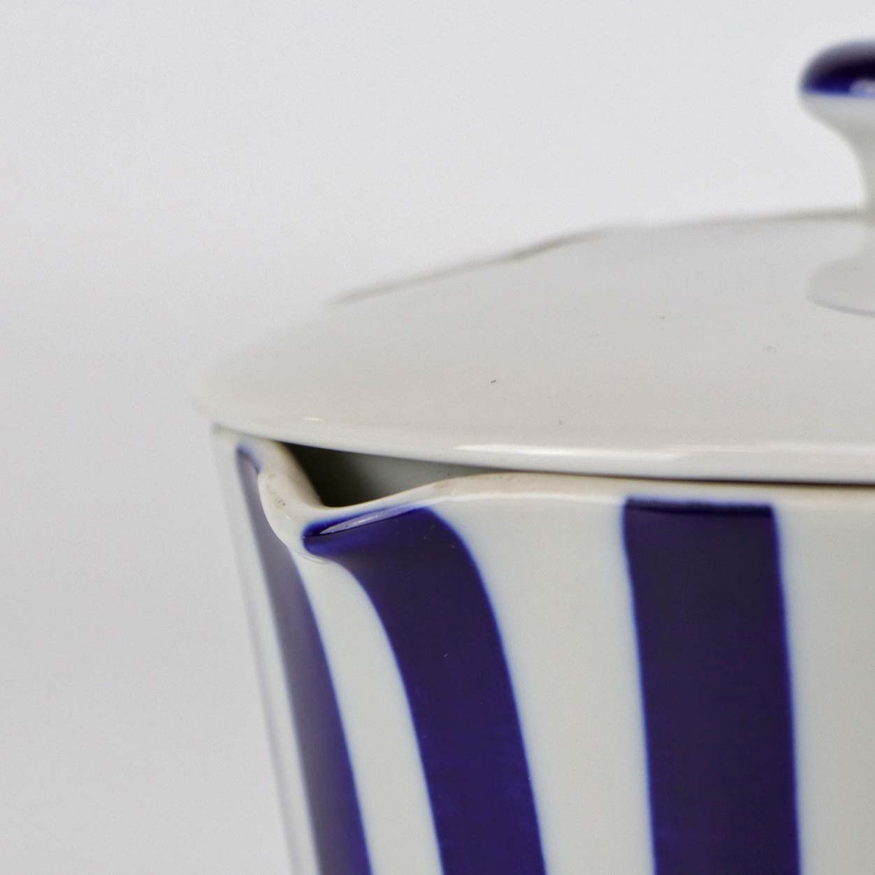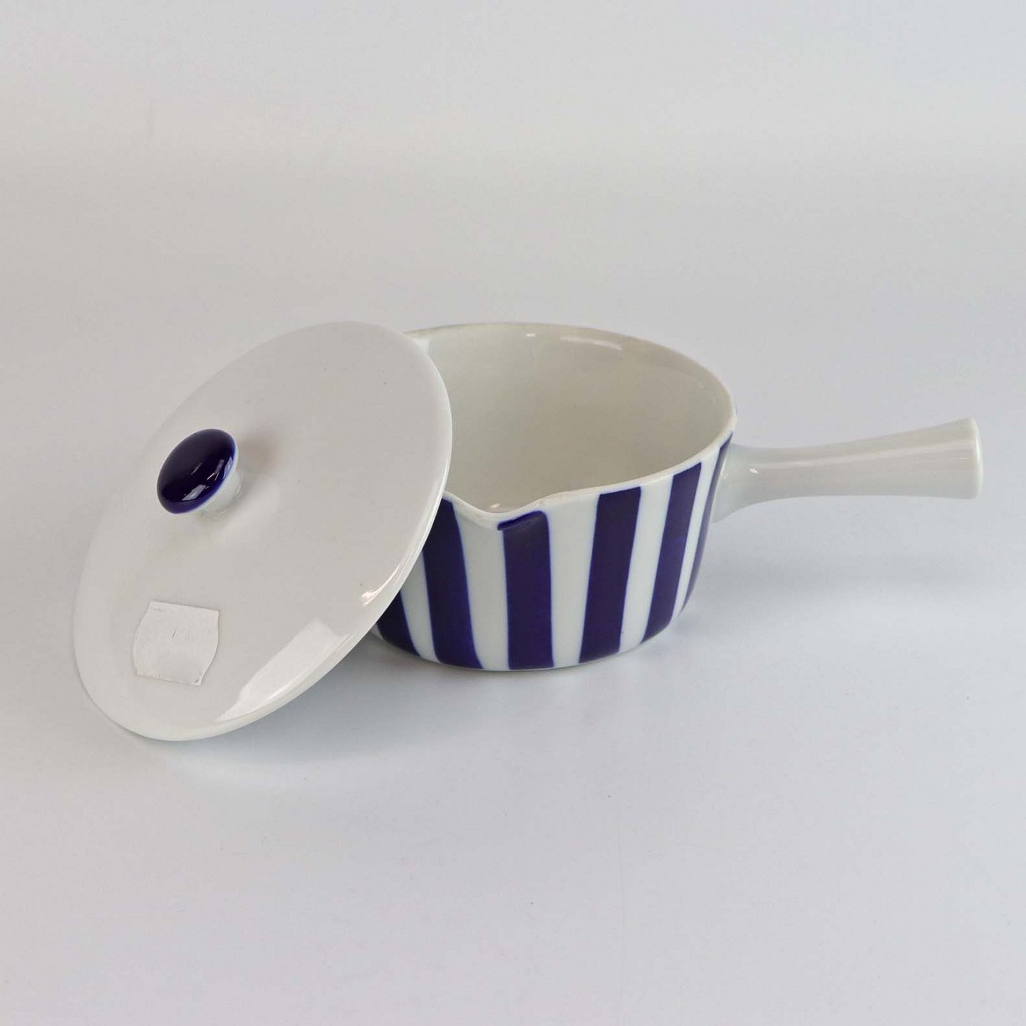 Smørnæb med låg i porcelæn fra stellet blå striber