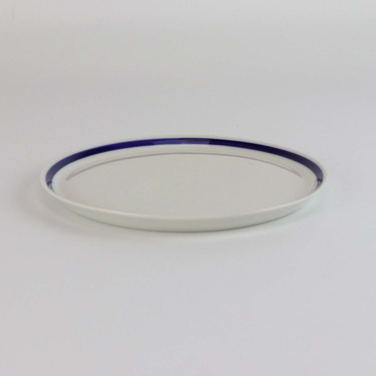 Flad kuvert asiet i porcelæn fra stellet blå striber