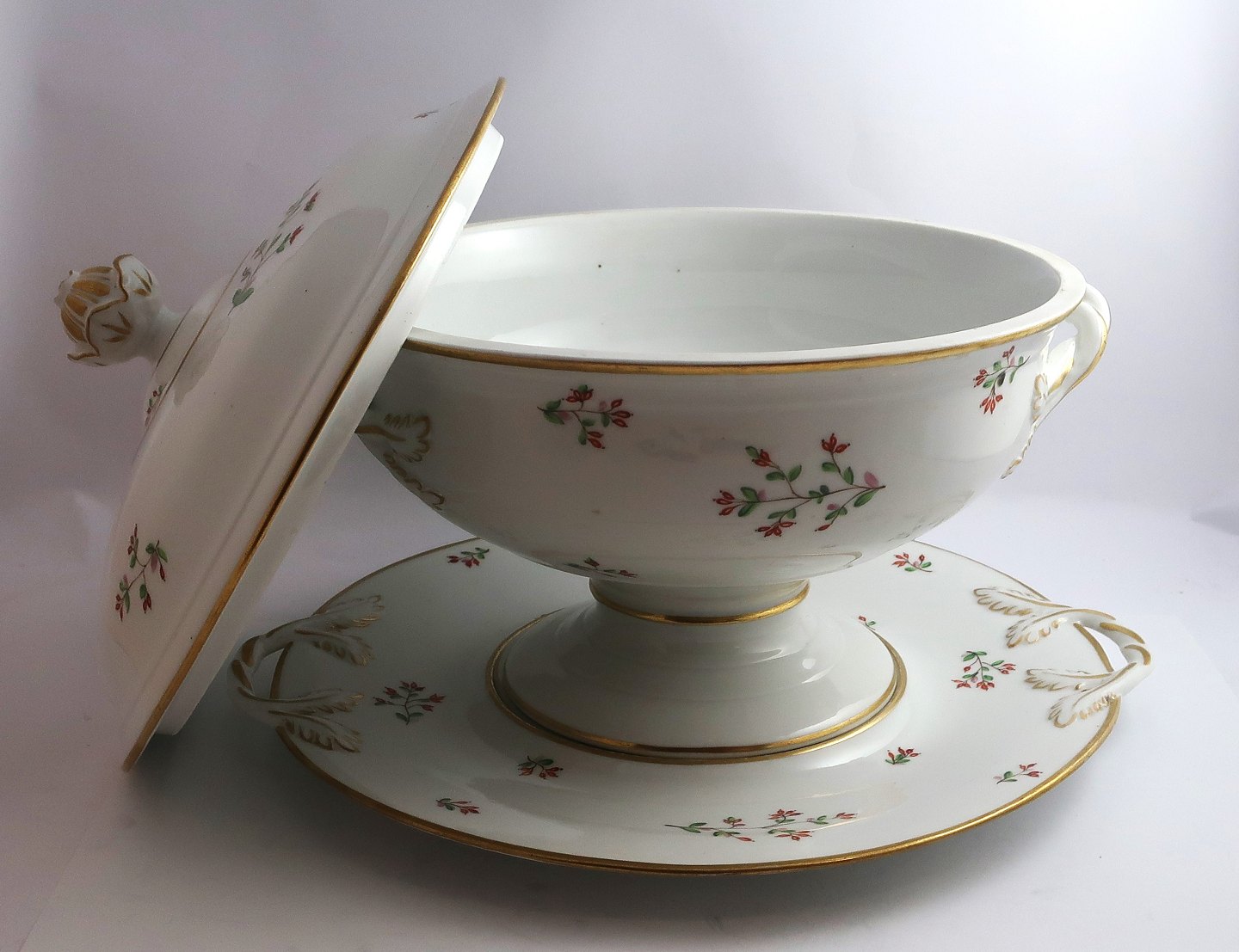 Røde bær (berberis). Royal Copenhagen. Stel no. 84. Terrin med underfad. Model 84/9032. Højde 28 cm. Produceret før 1890. (2 sortering)
