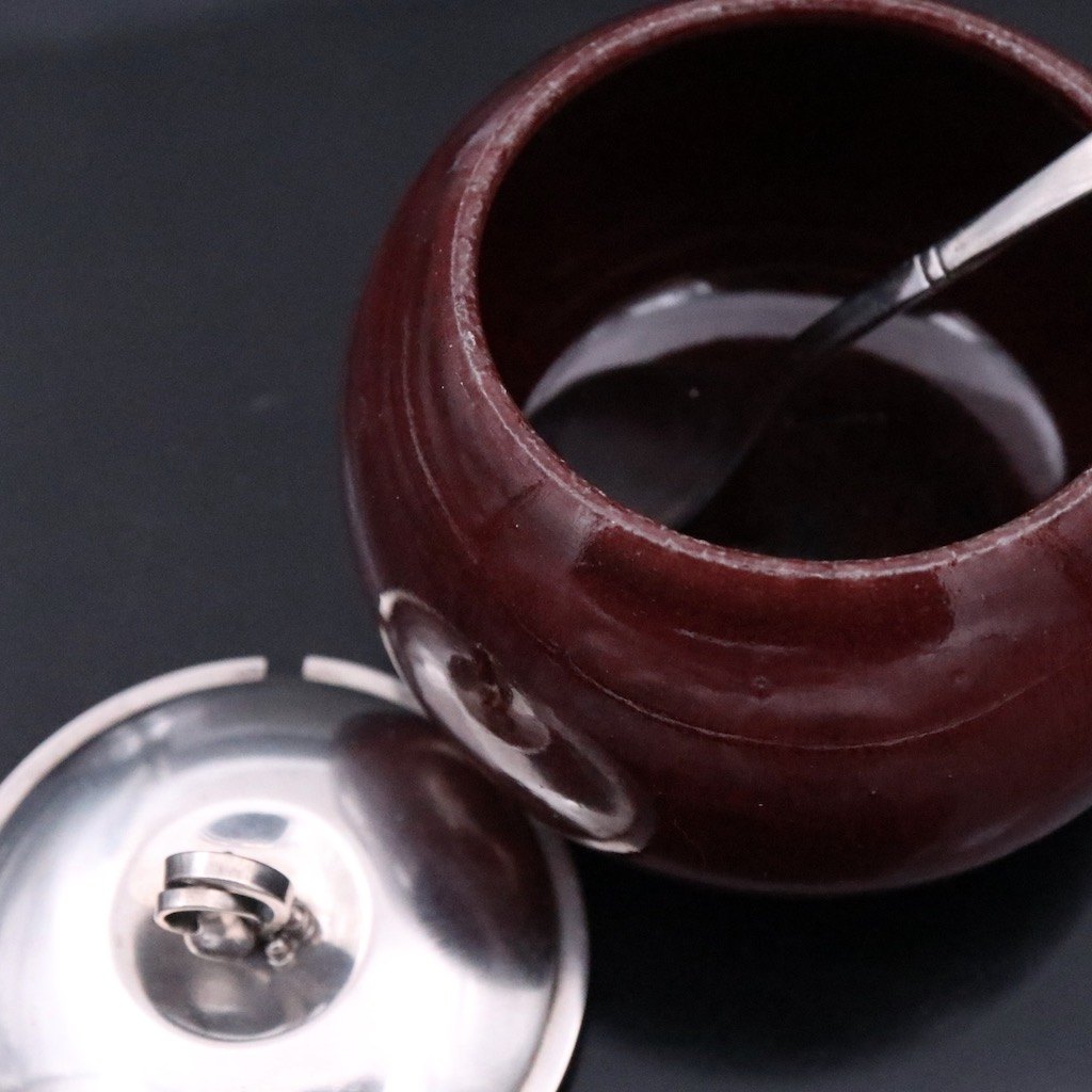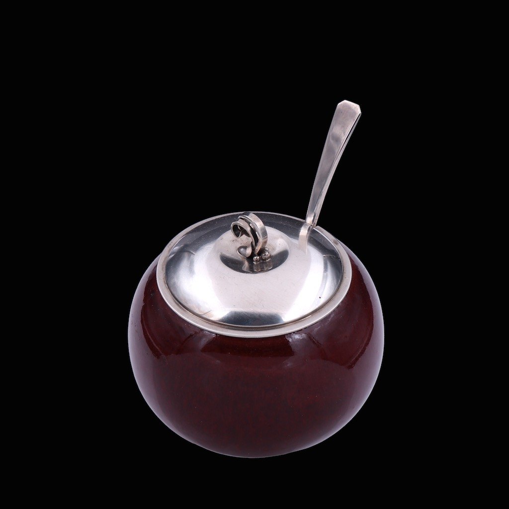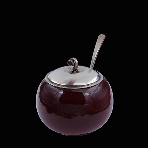 Royal Copenhagen - A.F. Rasmussen. Krukke i stentøj med låg og ske i sterlingsølv.