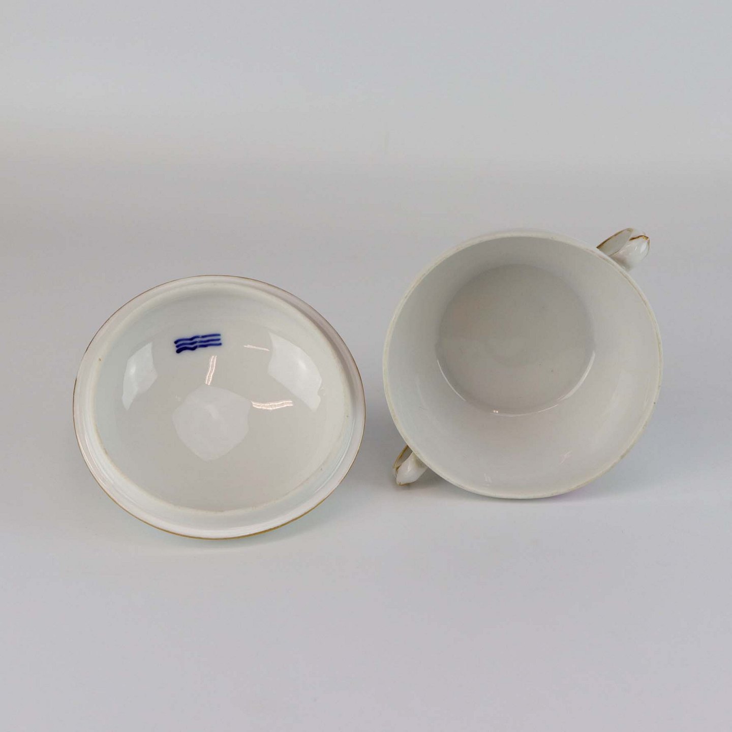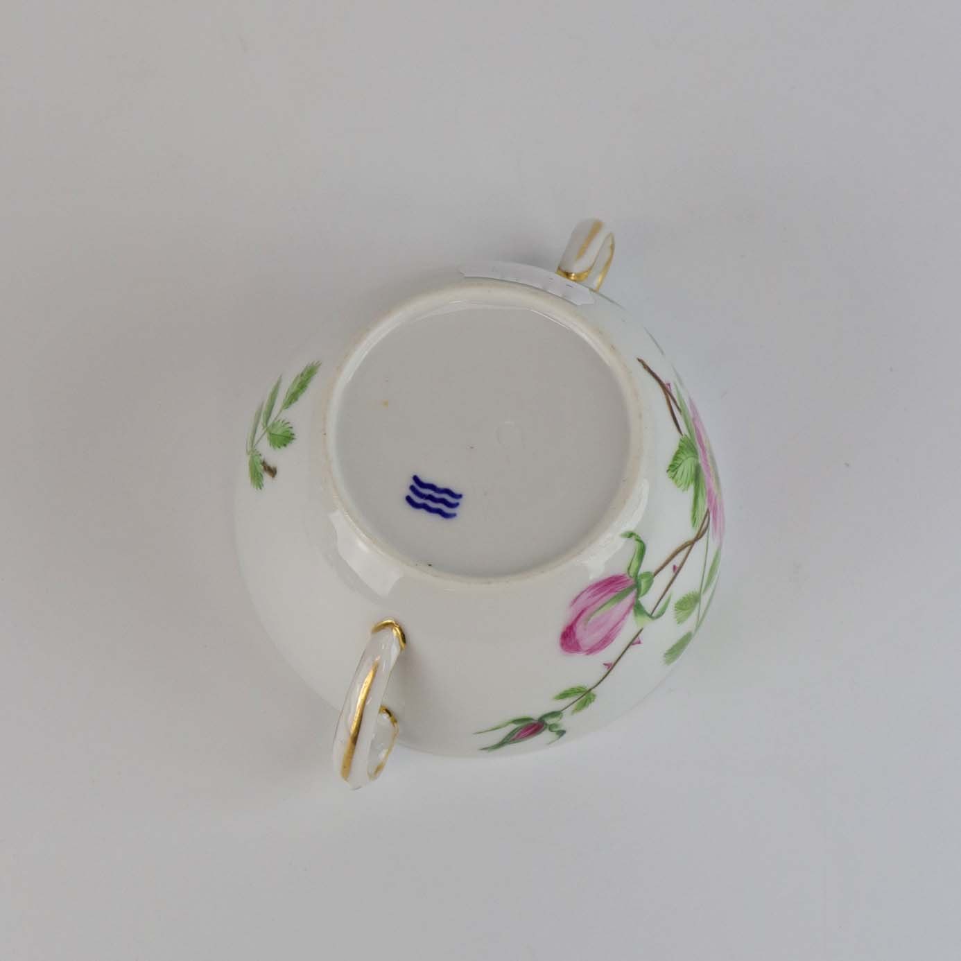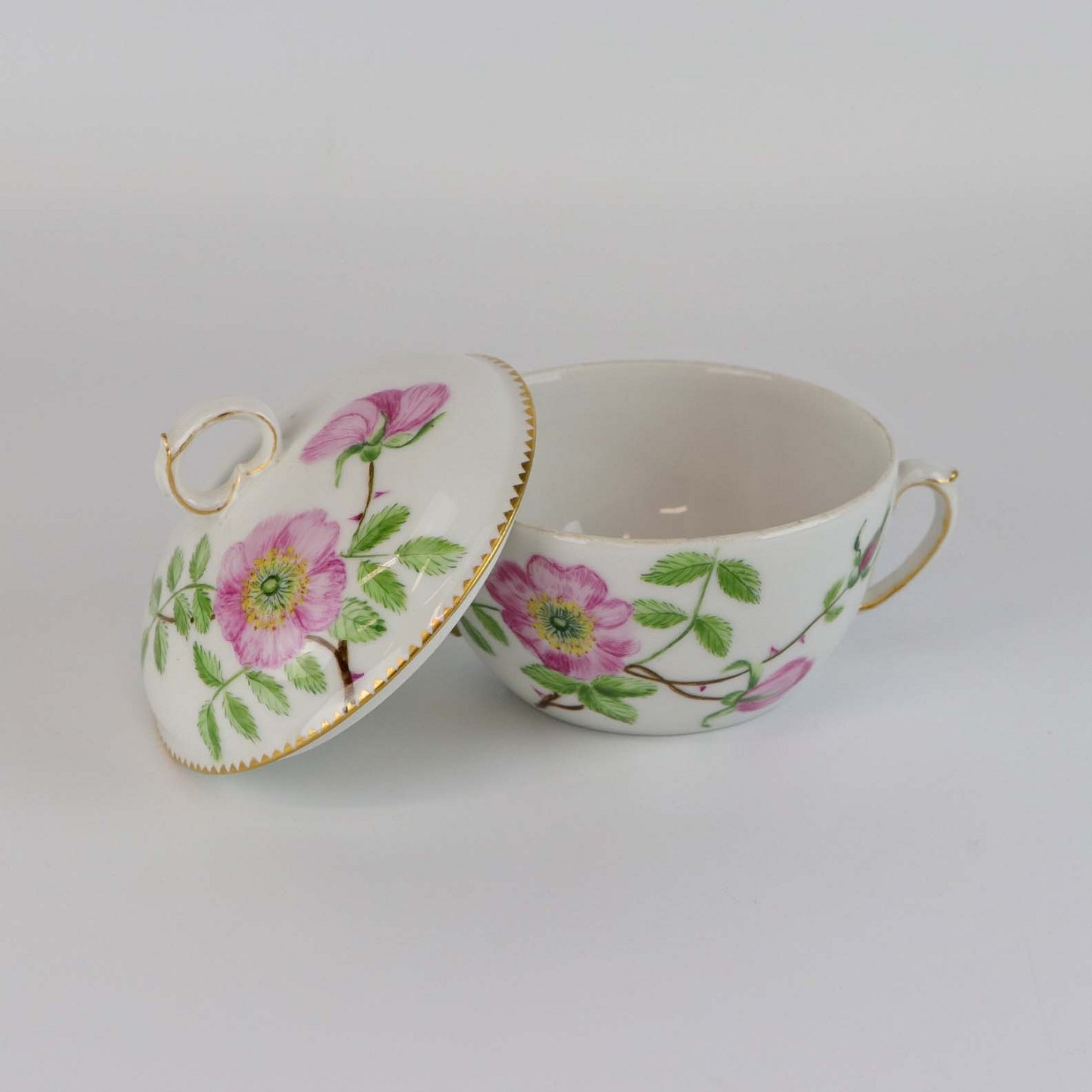 Victor Hugo er af glat hvidt porcelæn, dekoreret med takket guldkant og vild rose