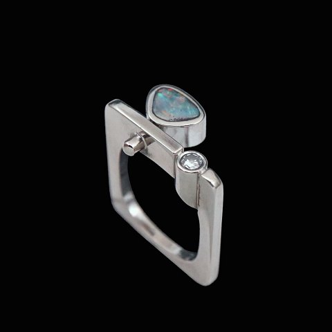 Knud Barslund. Ring i 14k hvidguld med opal og brillant.