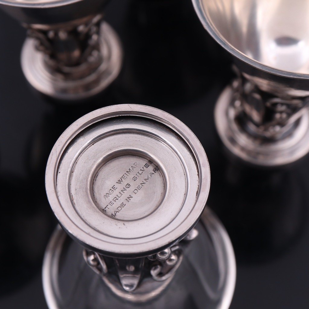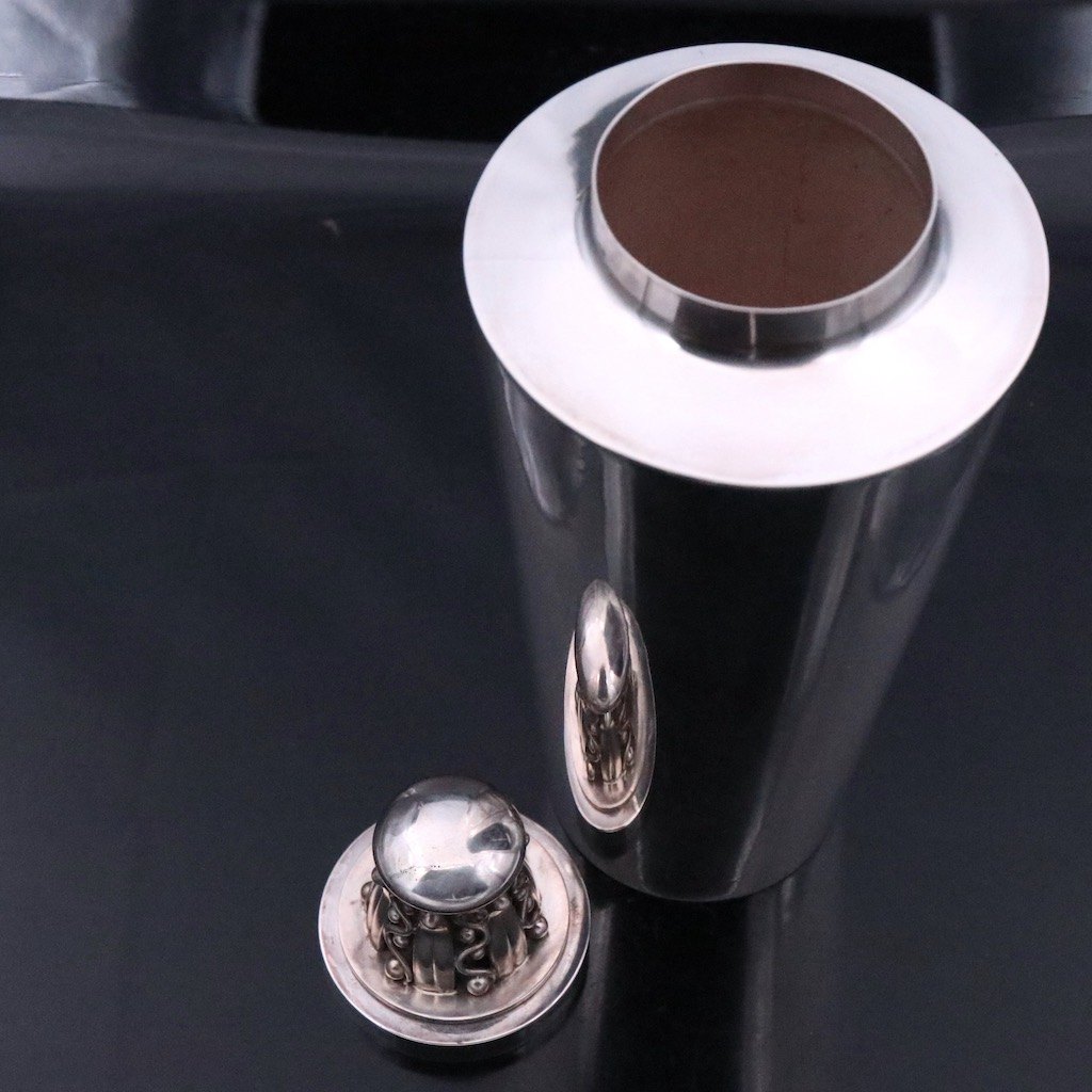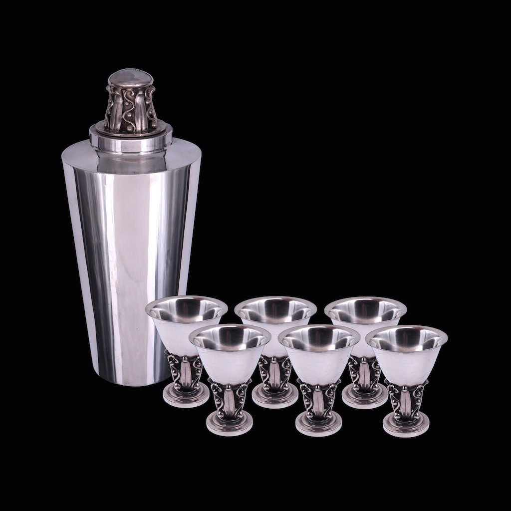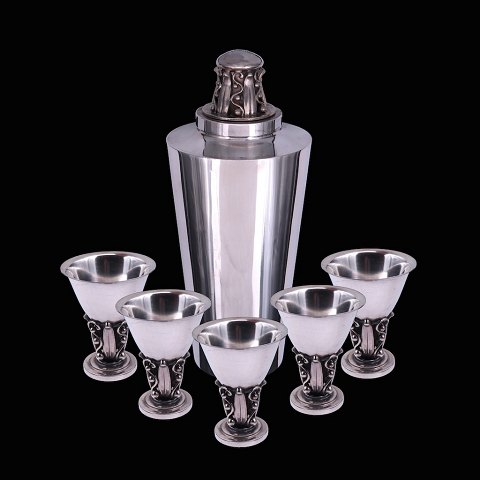 Aage Weimar. Cocktailshaker i sterling sølv med tilhørende bægre.