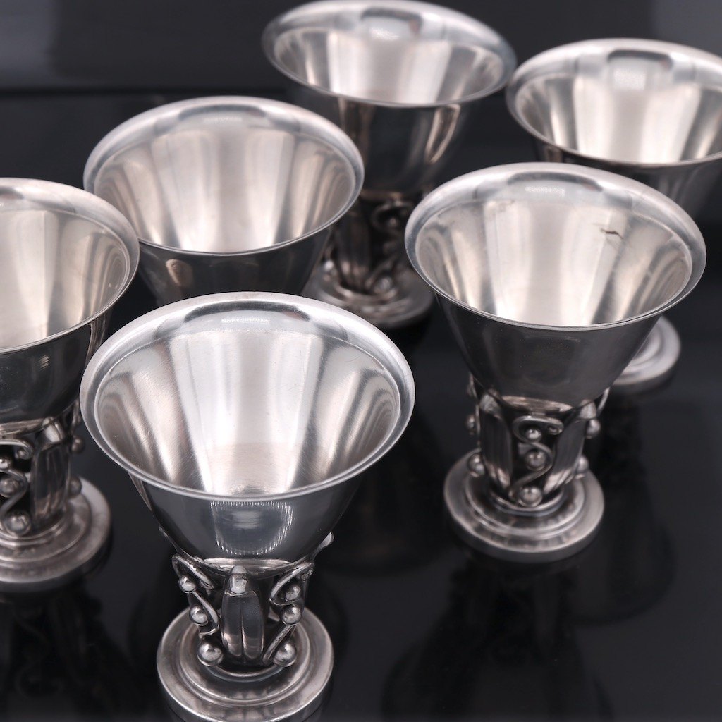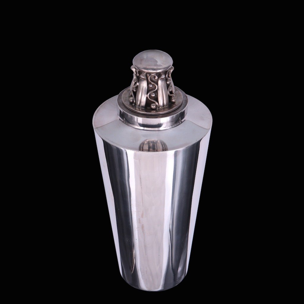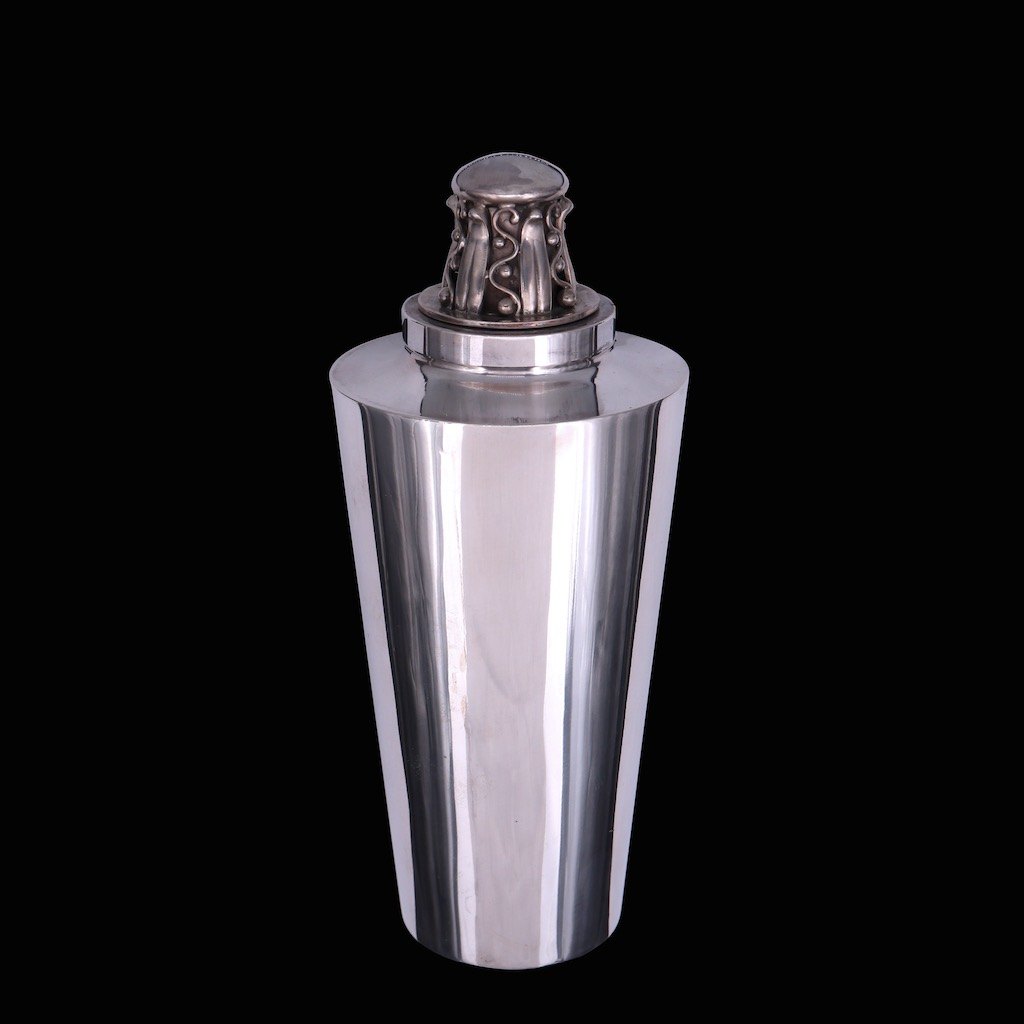 Aage Weimar. Cocktailshaker i sterling sølv med tilhørende bægre.