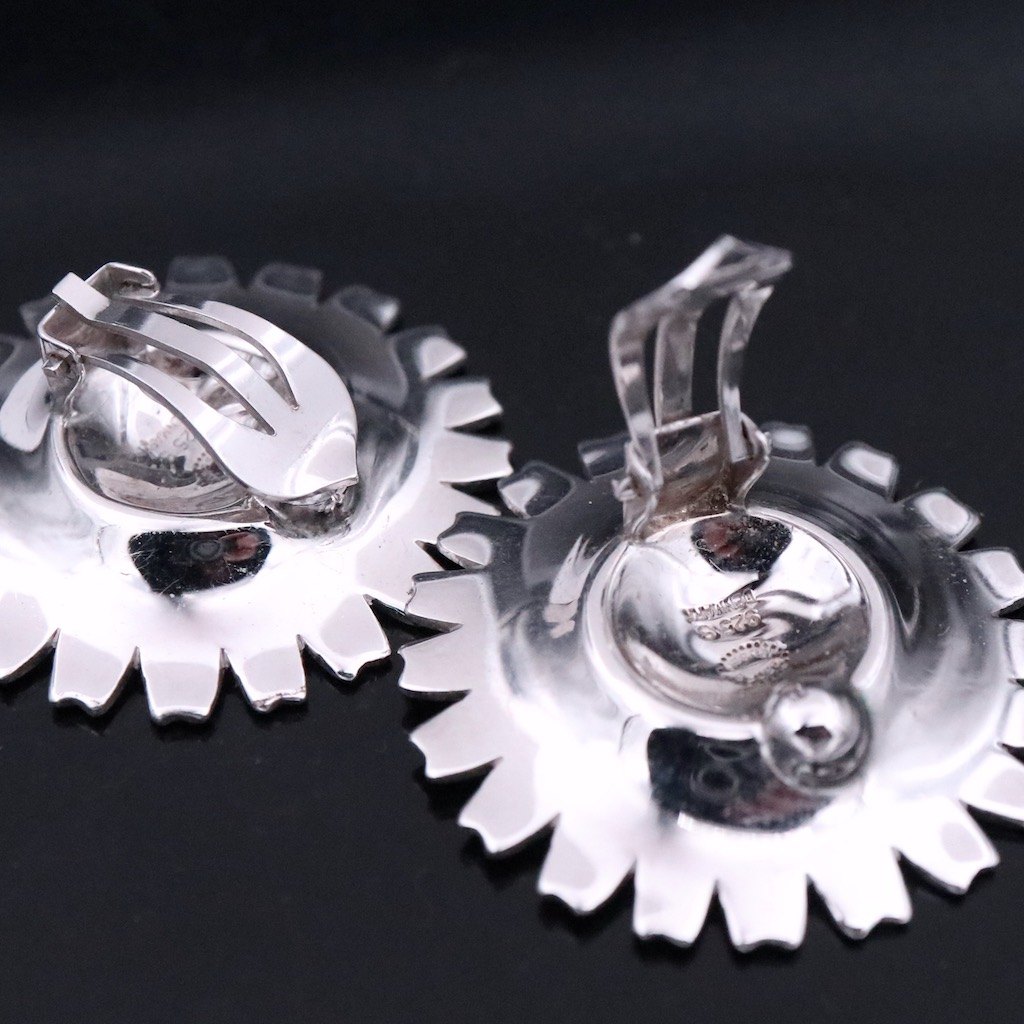 Georg Jensen. Sterling Silver Daisy Ear Clips with black Enamel - 33mm.