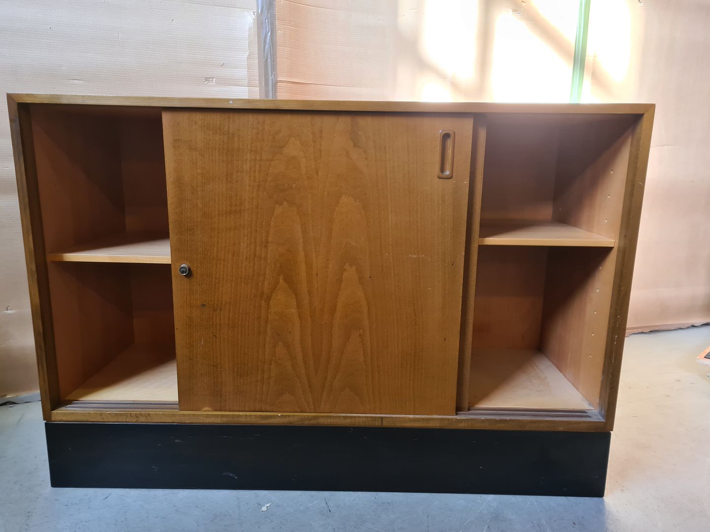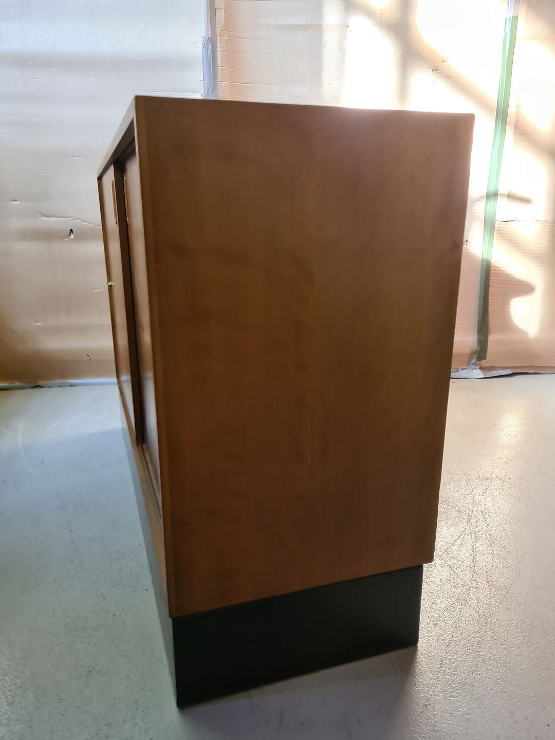 Skab i fineret bøgetræ med malet sokkel, fra 1960erne.