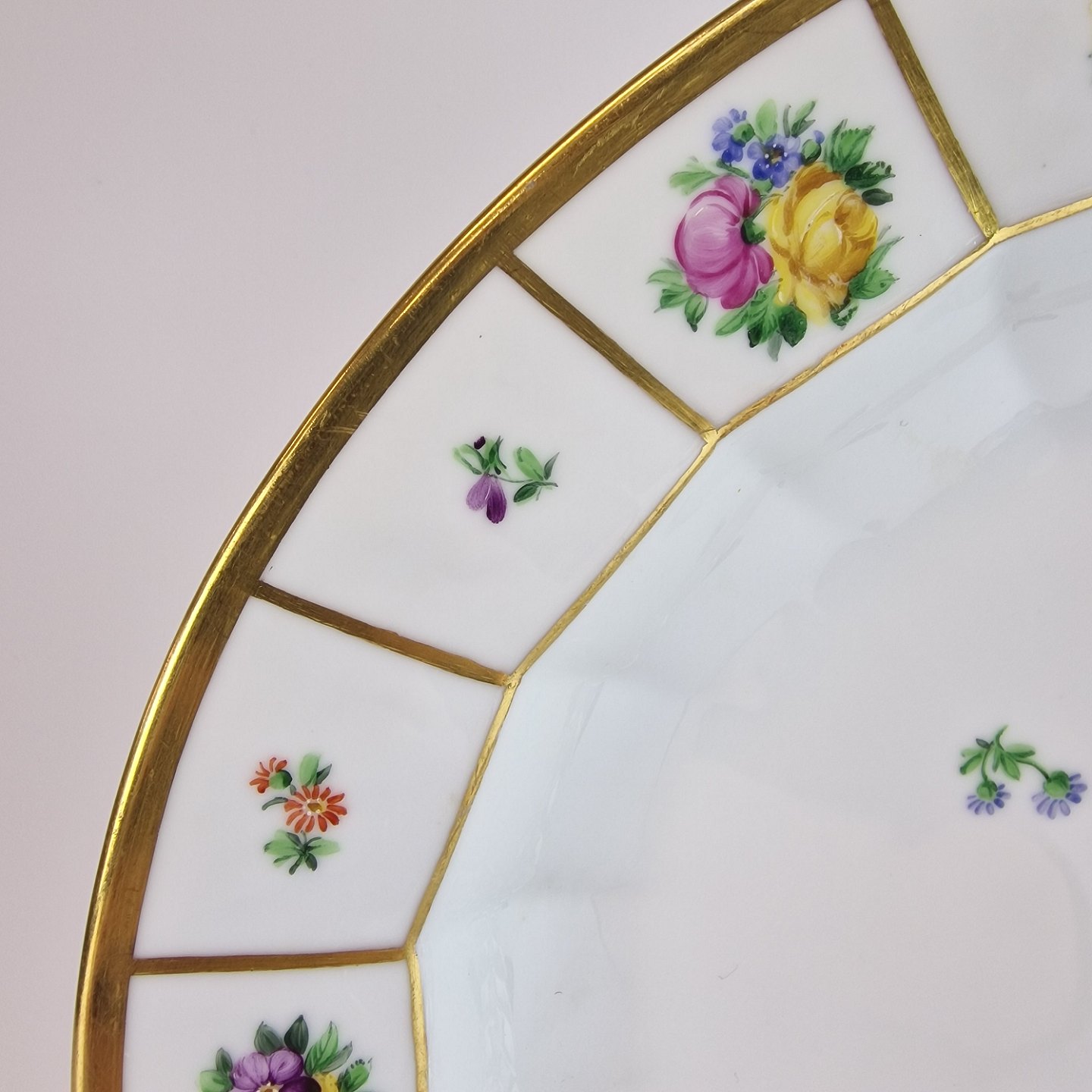 Henriette er af porcelæn og har motiver af små blomsterbuketter og guldstreger på det kantede stel.