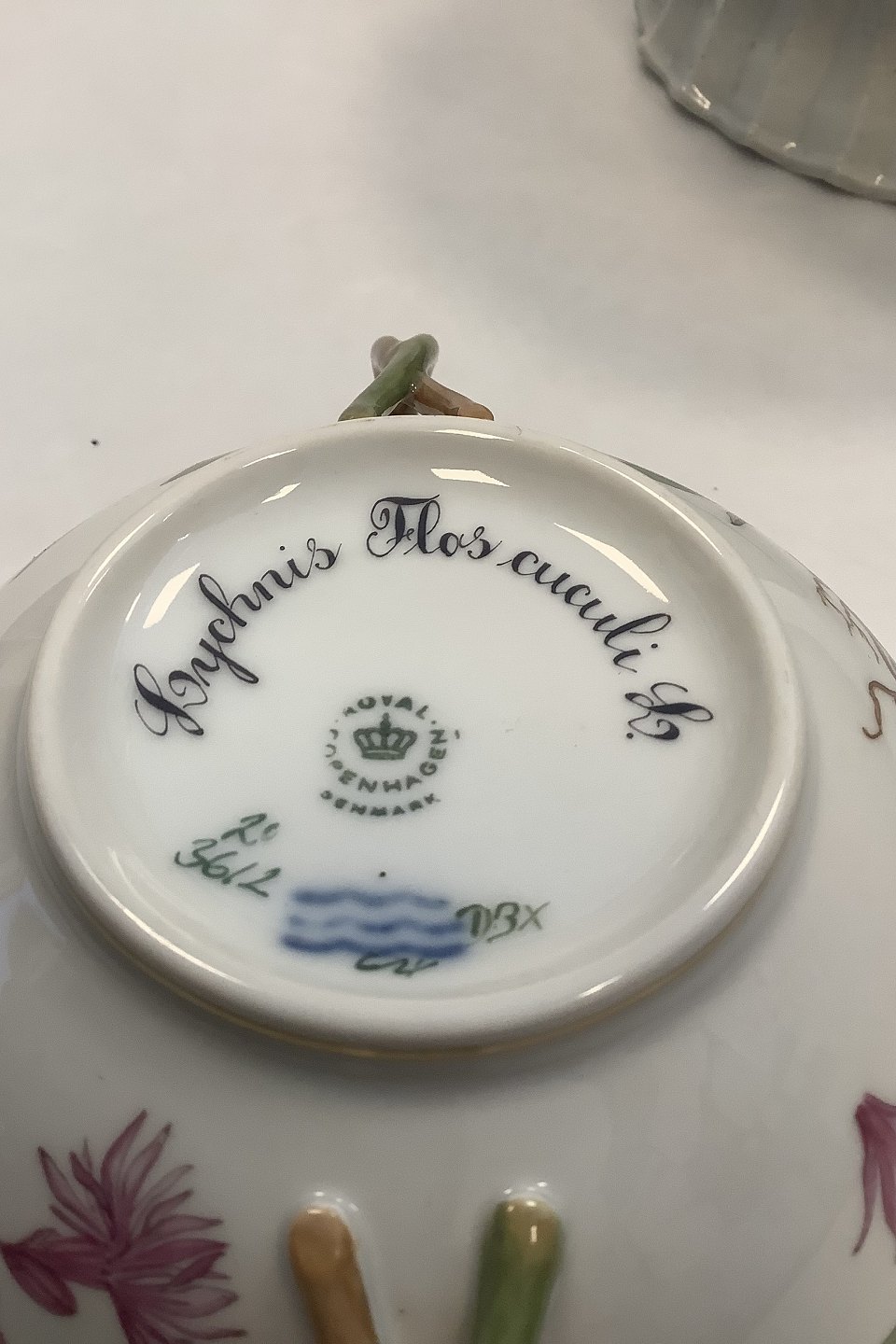 Royal Copenhagen Flora Danica Bouillon Kop med underskål No 20/3612 Latinsk Navn: Lychnis Flos cuculi L