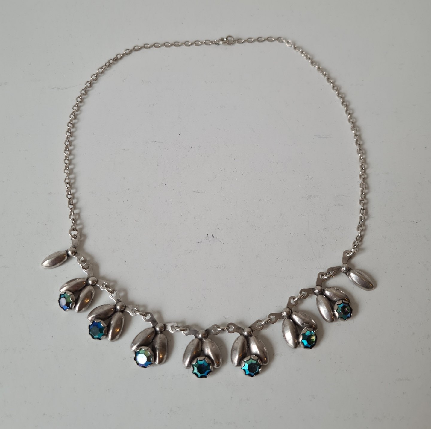 Hermann Siersbøl vintage halskæde i sterlingsølv med lyseblå sten