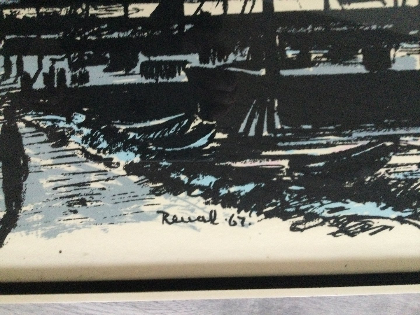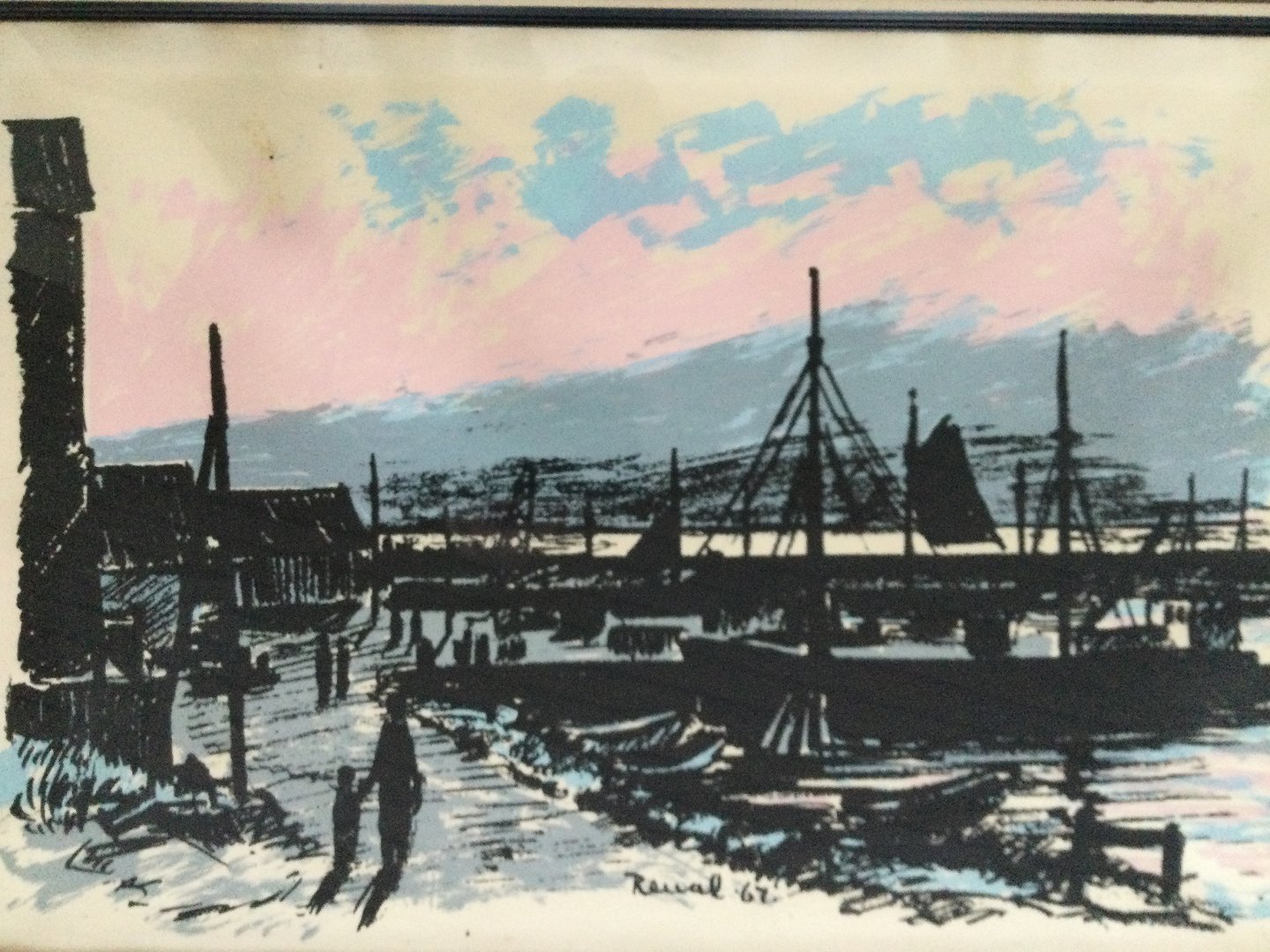Litografi af Renal Bache - Havneparti 1967.