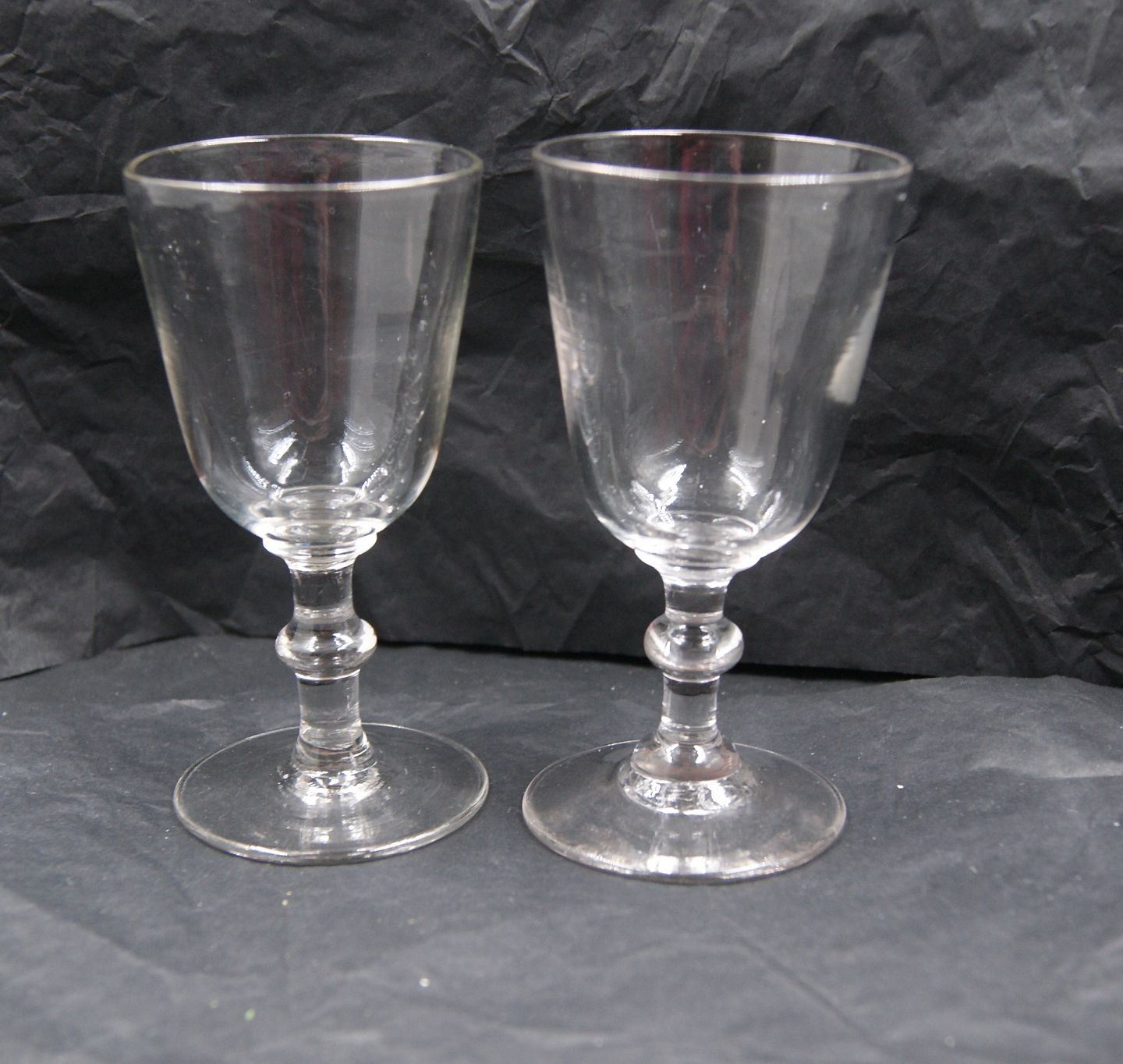 Glatte vinglas med rund knap på stilk og klippet under fod, i fin stand.