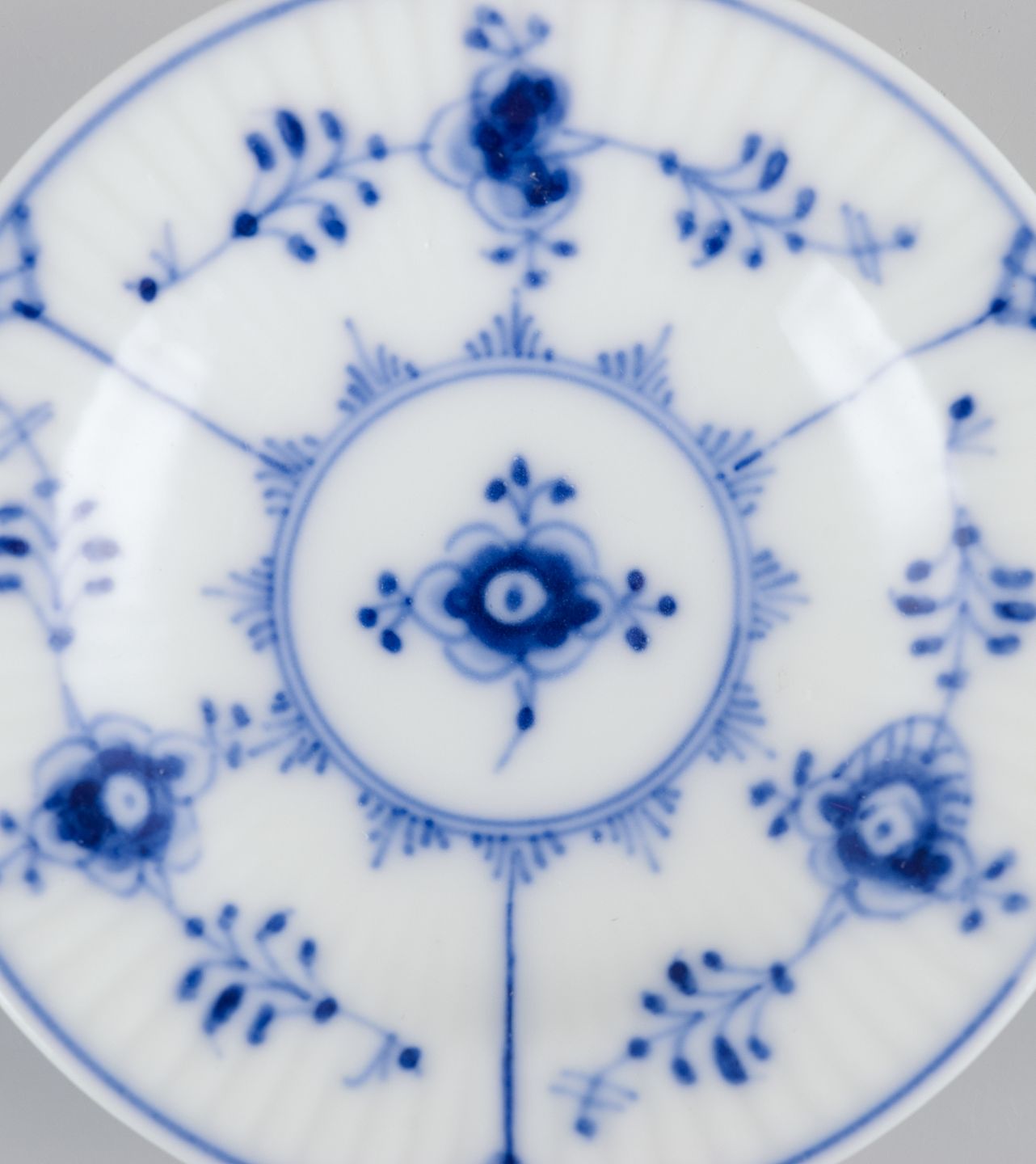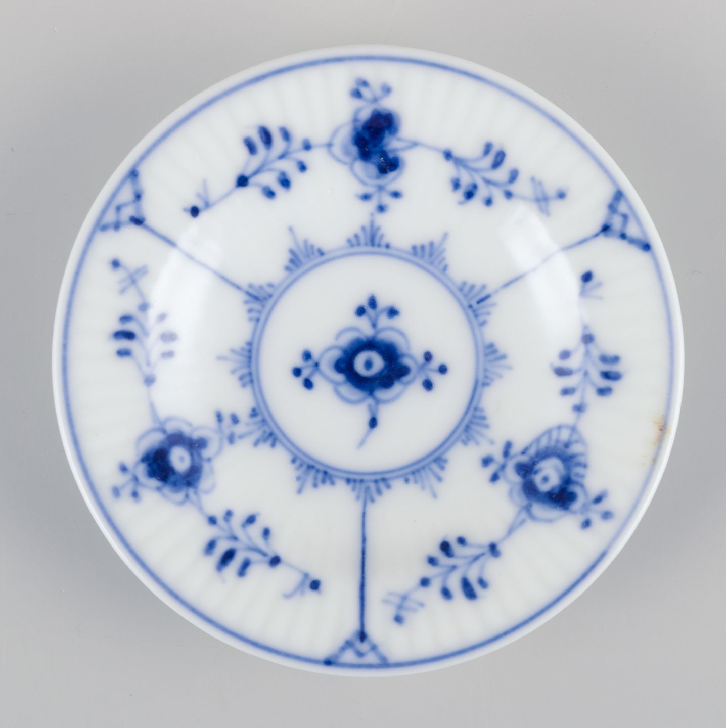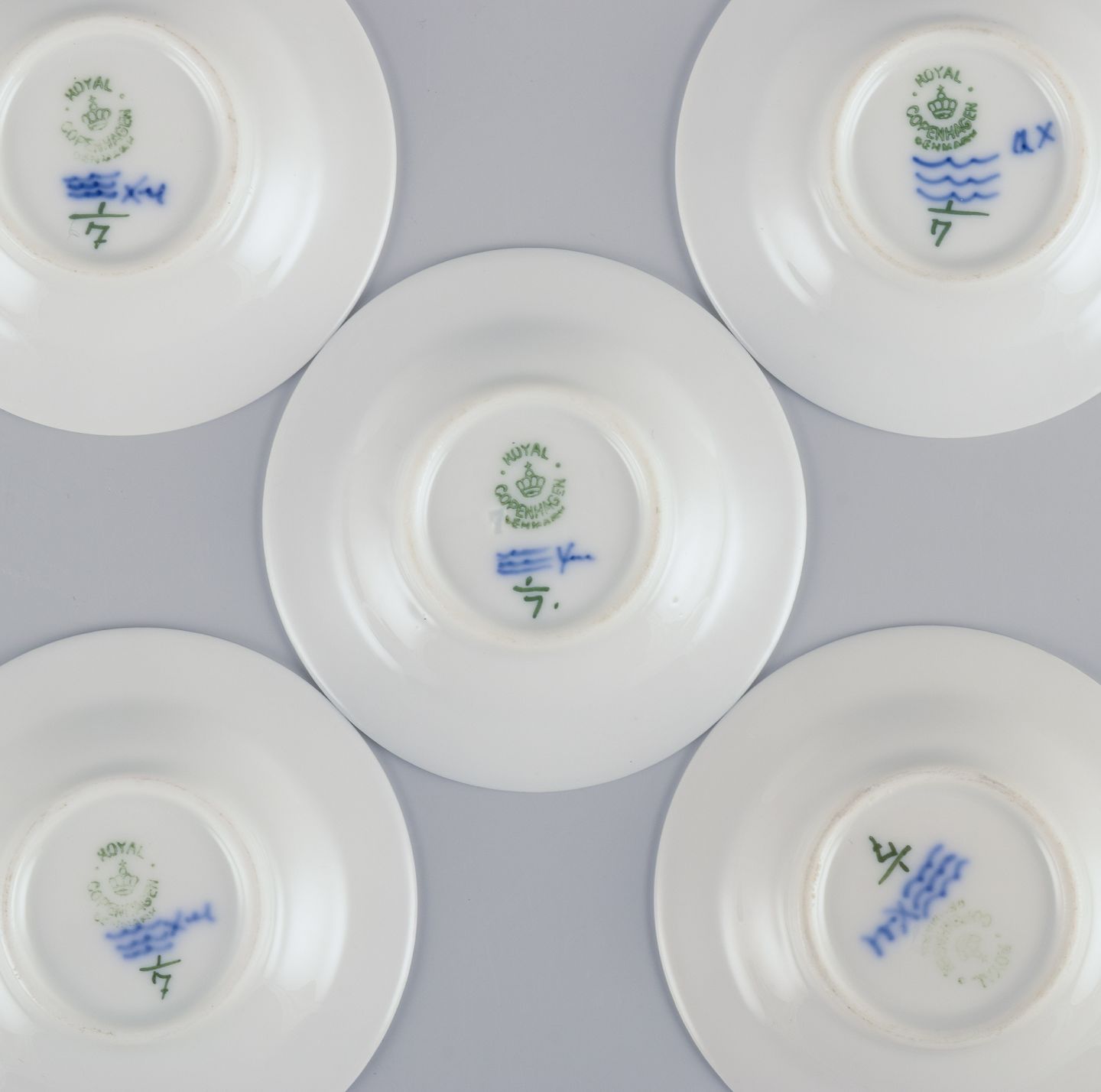 Royal Copenhagen Musselmalet Riflet, fem kaviarskåle/kuvertsmør.