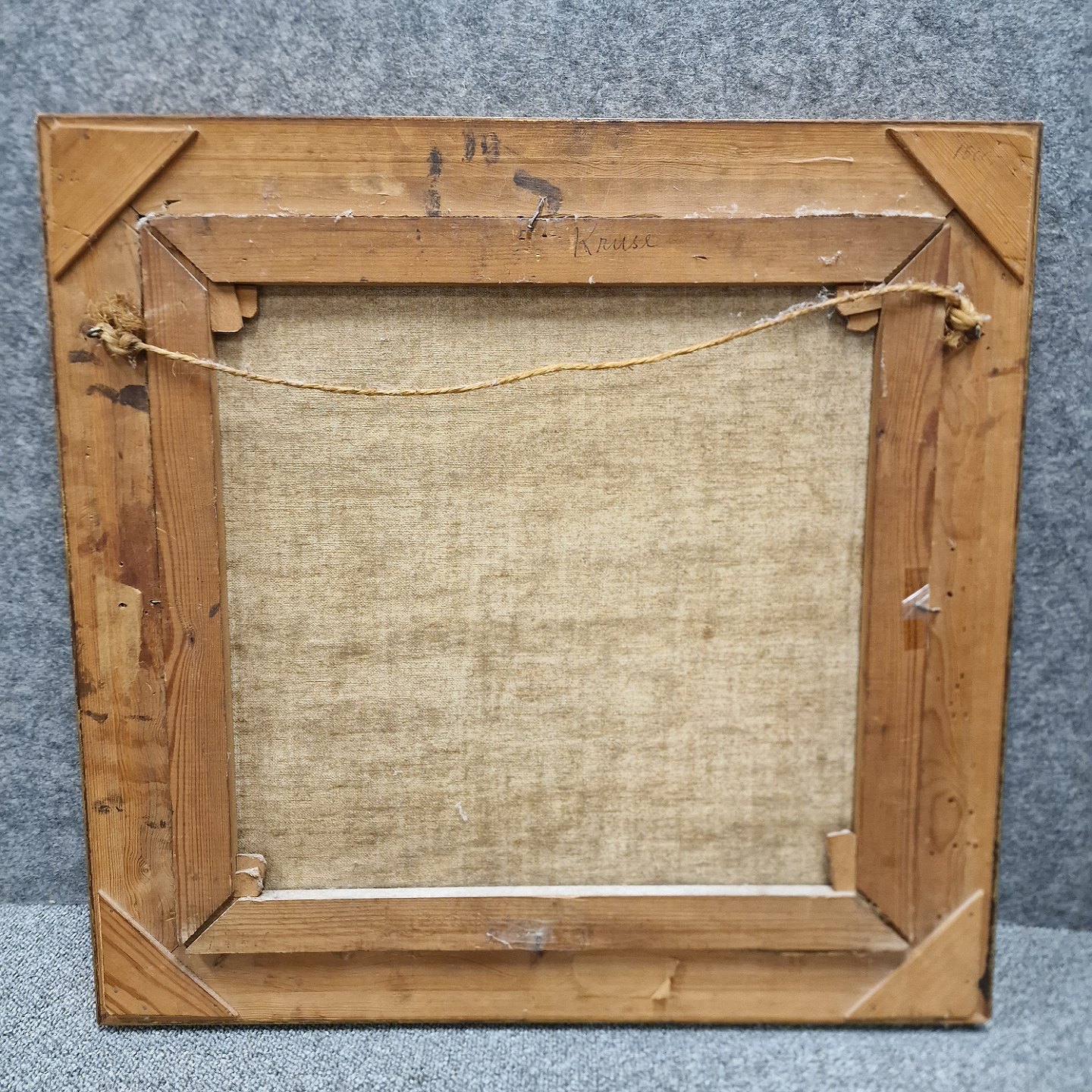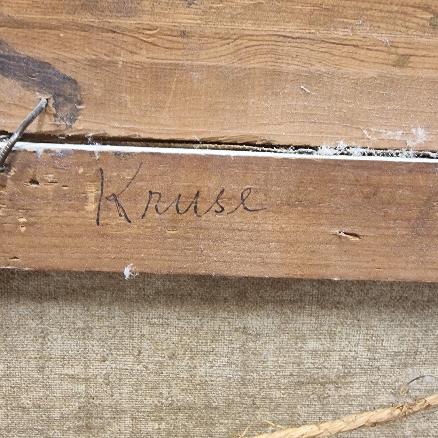 Maleri med oliemaling på lærred. Motiv af jordvej i landsby