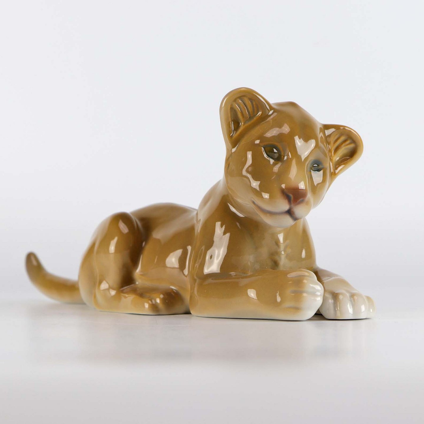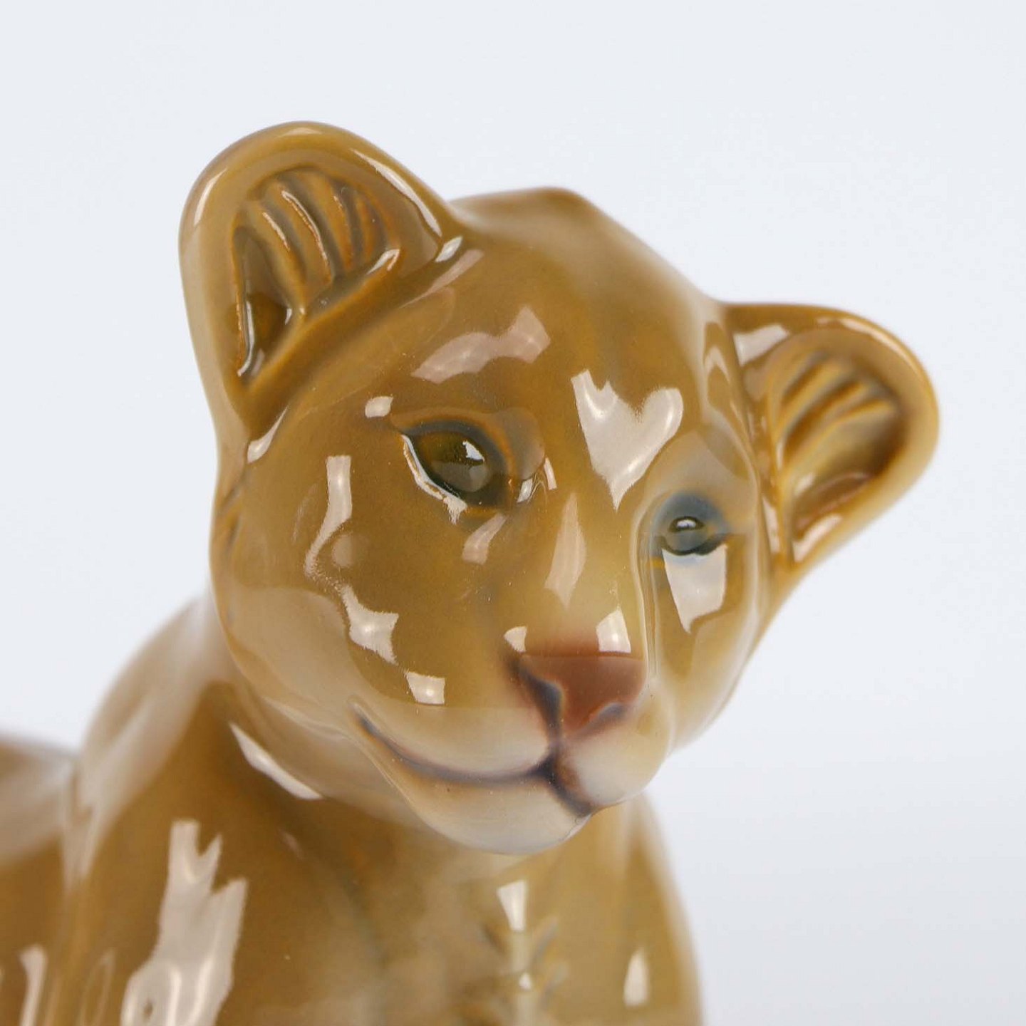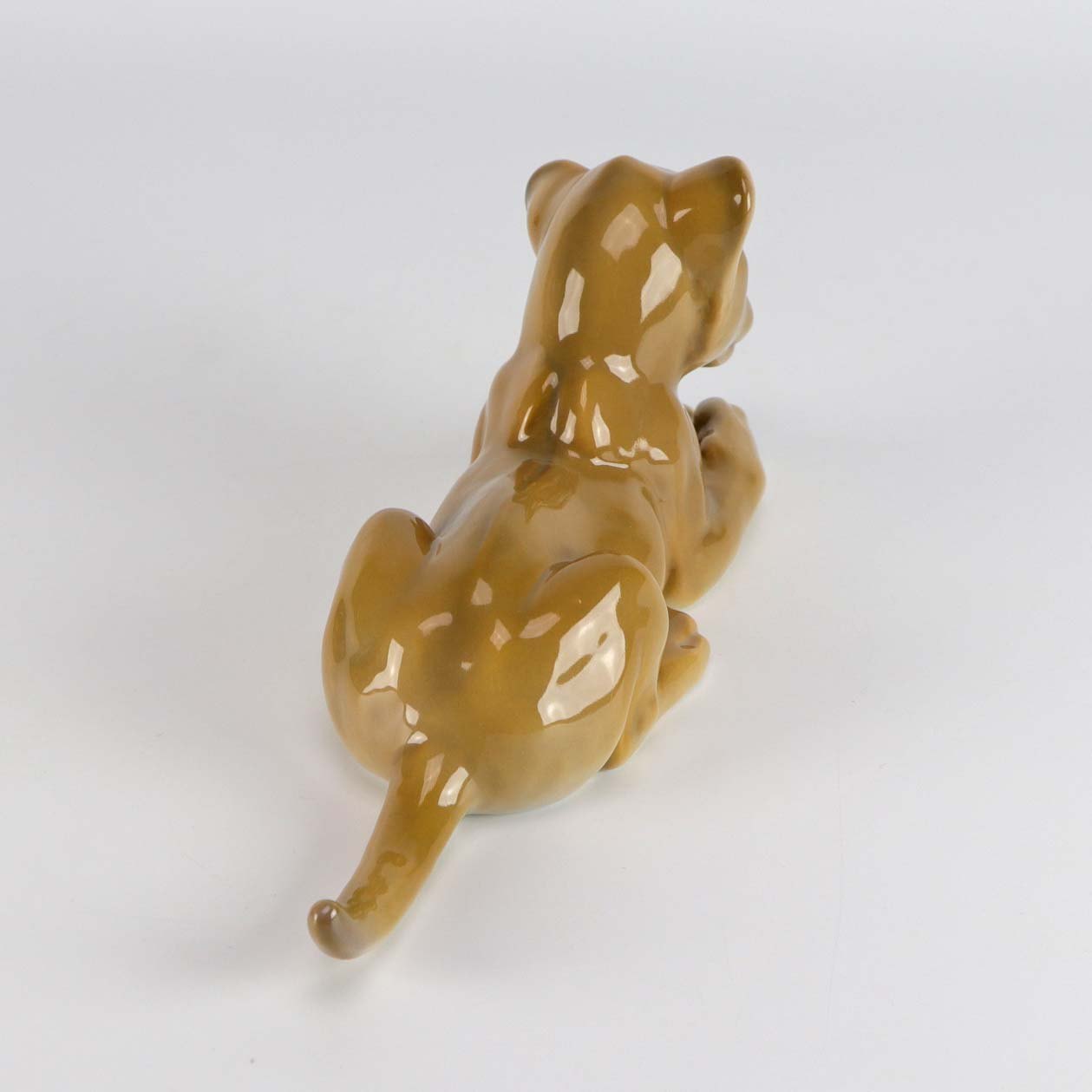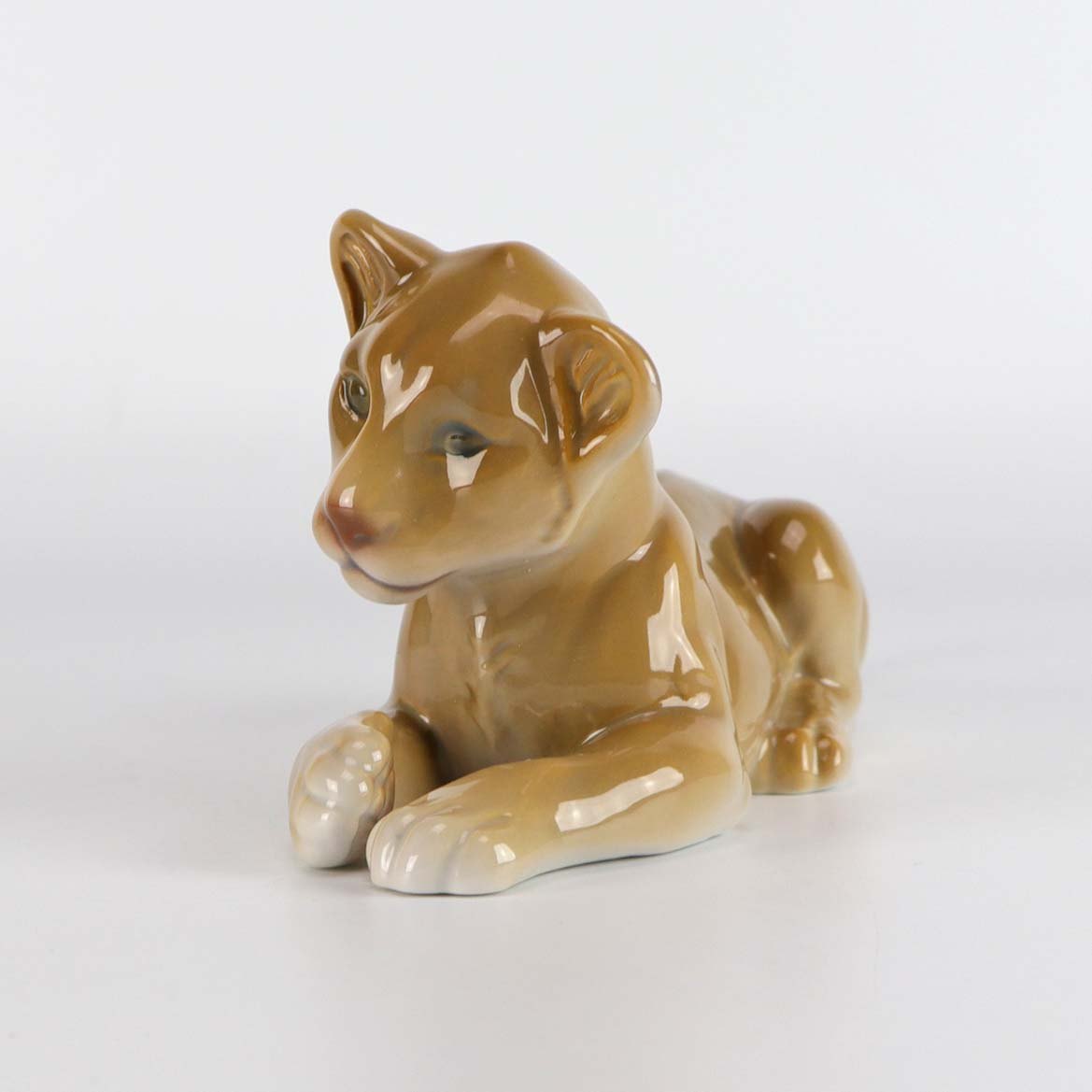 Figur i porcelæn, håndmalet med motiv af liggende løveunge nr 2528