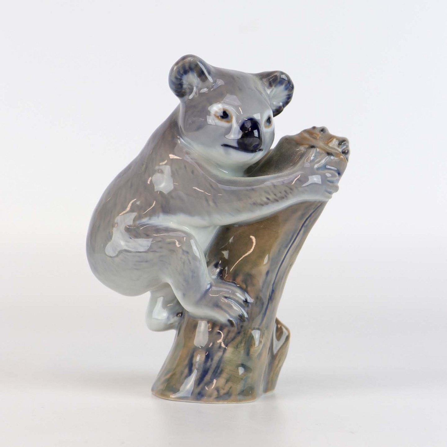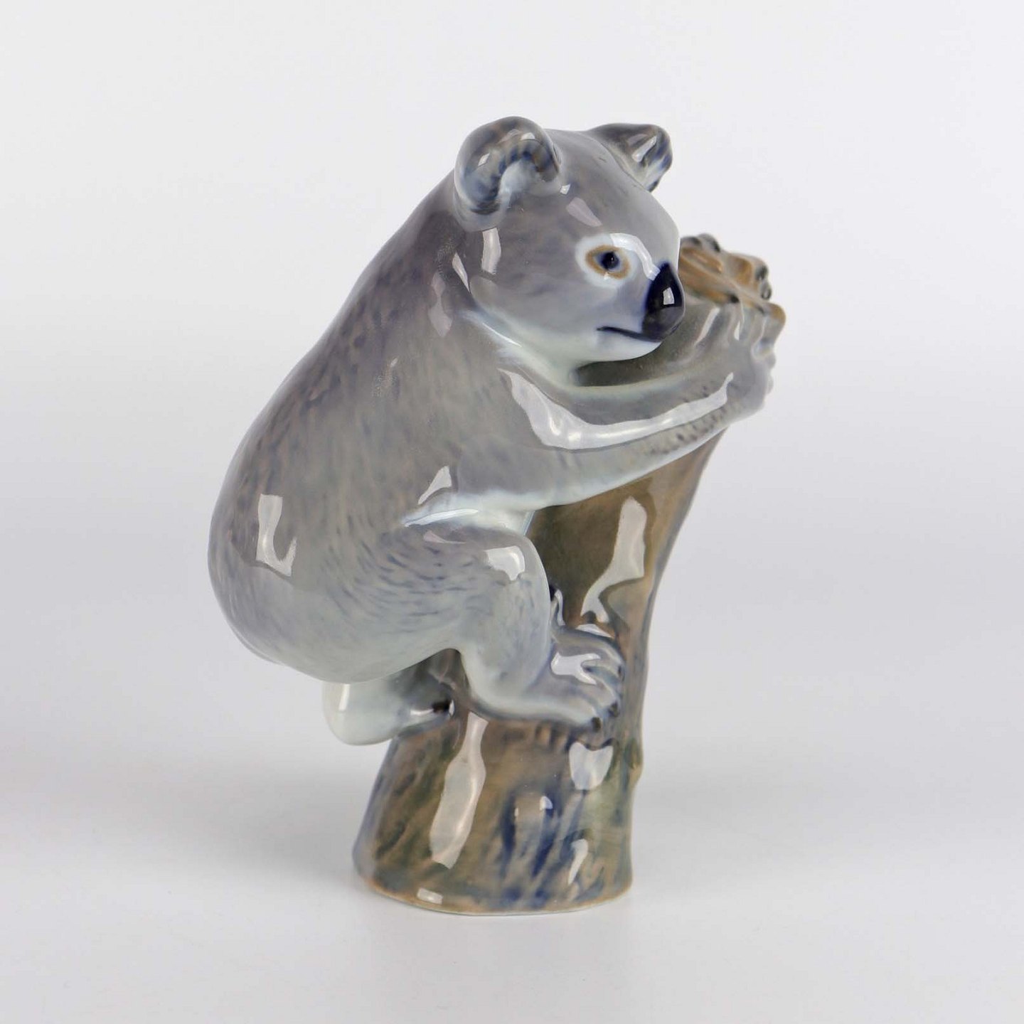 Årsfigur i porcelæn fra 1993, håndmalet med motiv koalabjørn på træstub nr 24/5000