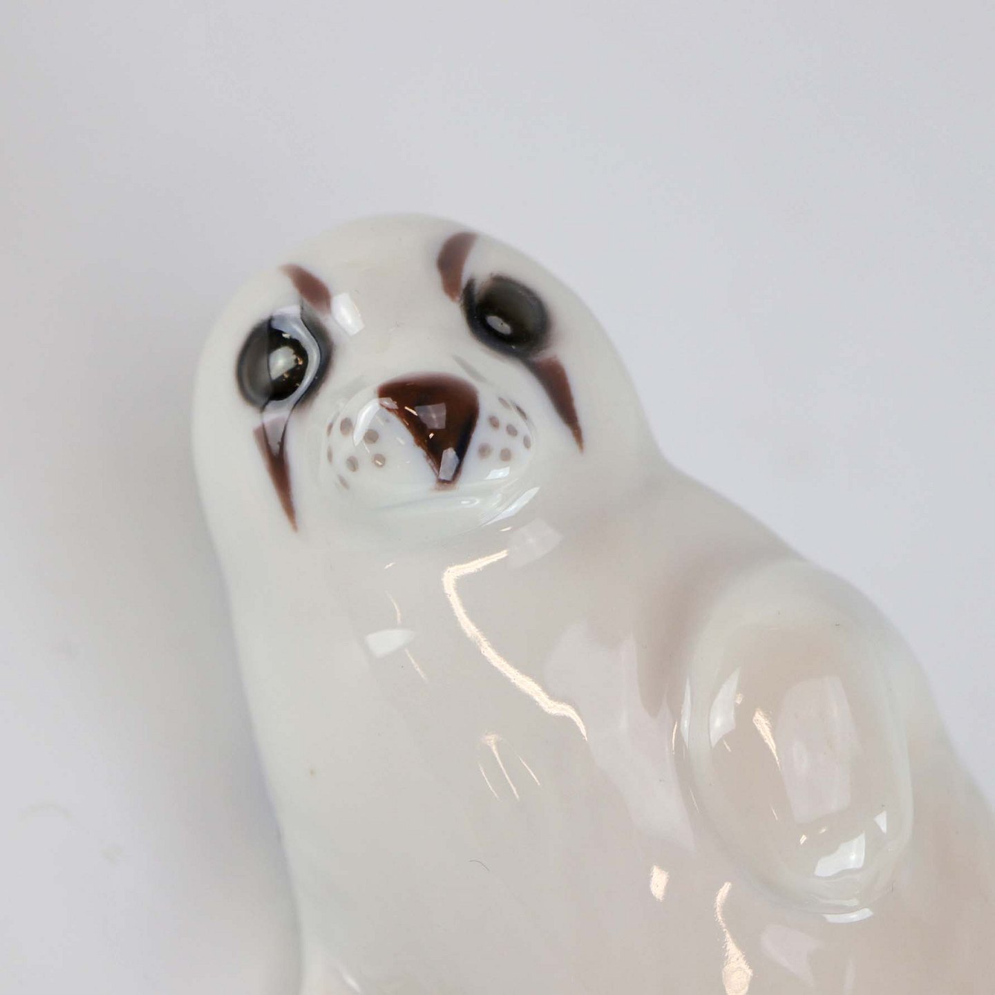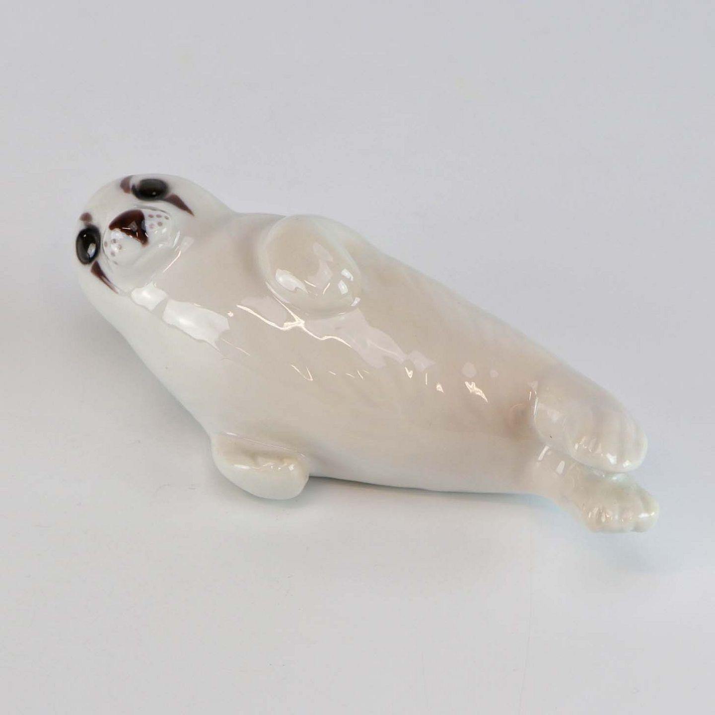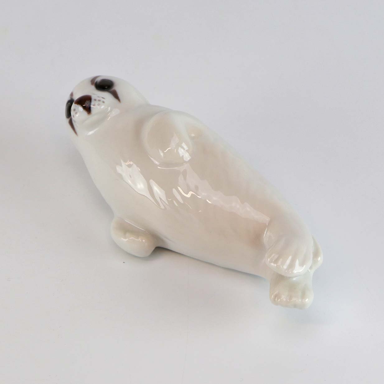Figur i porcelæn, håndmalet med motiv af liggende sælunge nr 2492