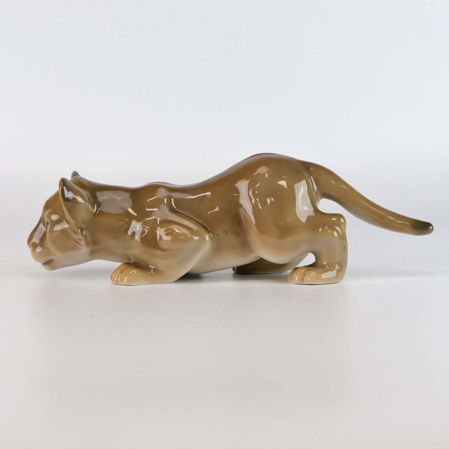 Figur i porcelæn, håndmalet med motiv af løveunge på jagt nr 2529