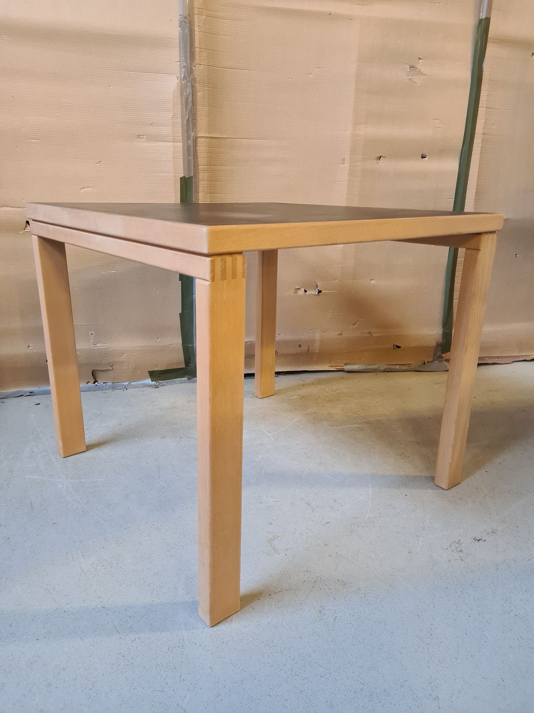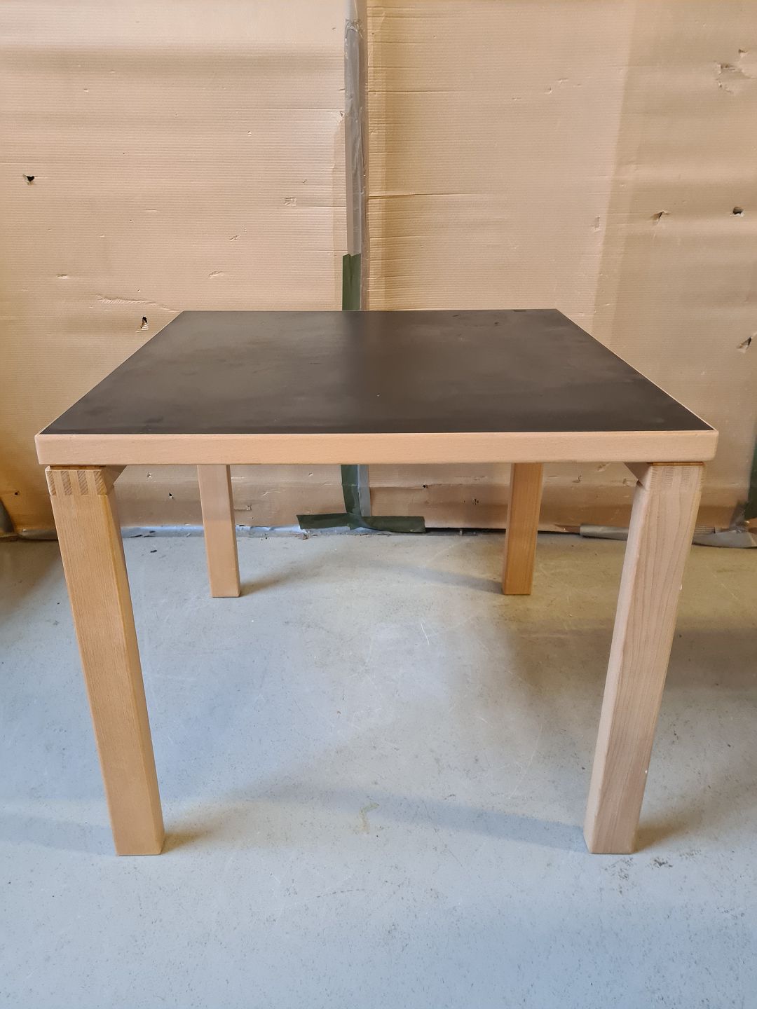 Kvadratisk bord i massivt bøgetræ med sort linoleum, fra 2000erne.