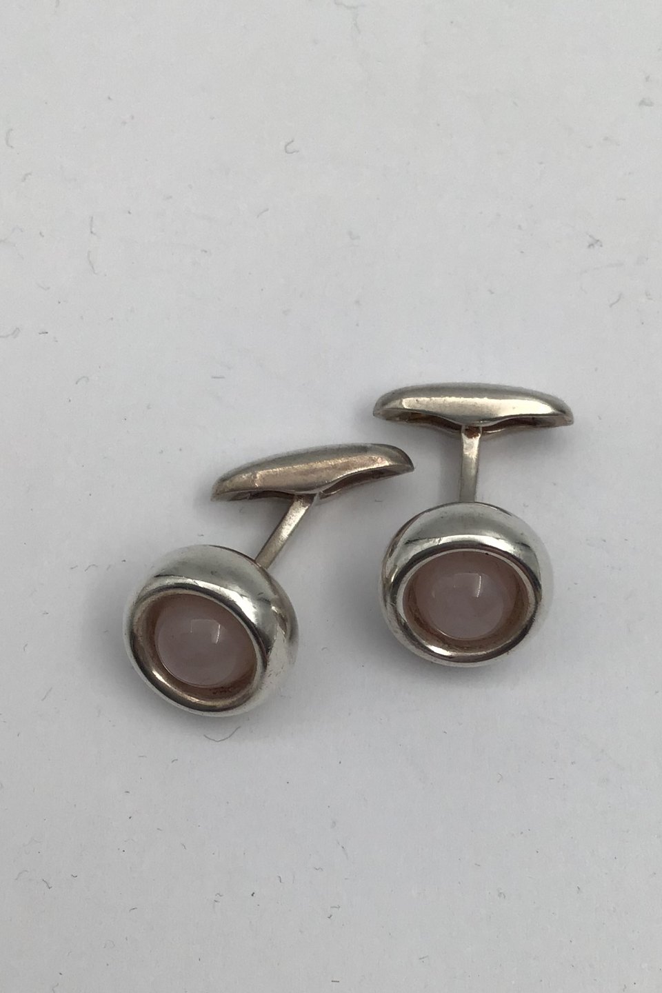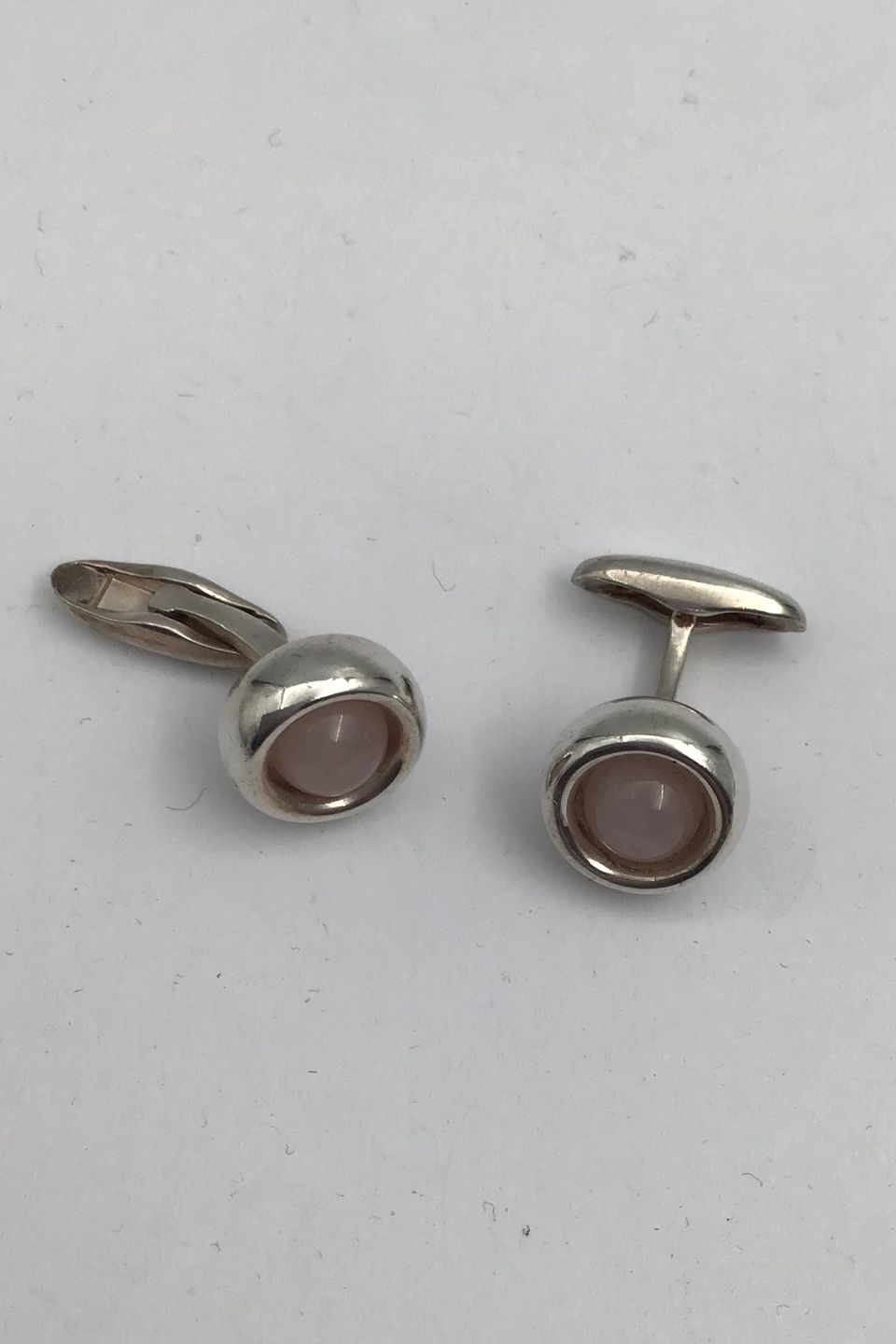 Georg Jensen Sterling Sølv Manchetknapper No 473 Sphere Rosa Quartz Regitze Overgaard Måler Diam 1.4 cm (0.55 inch) Vægt 15.6 gr (0.55 oz)