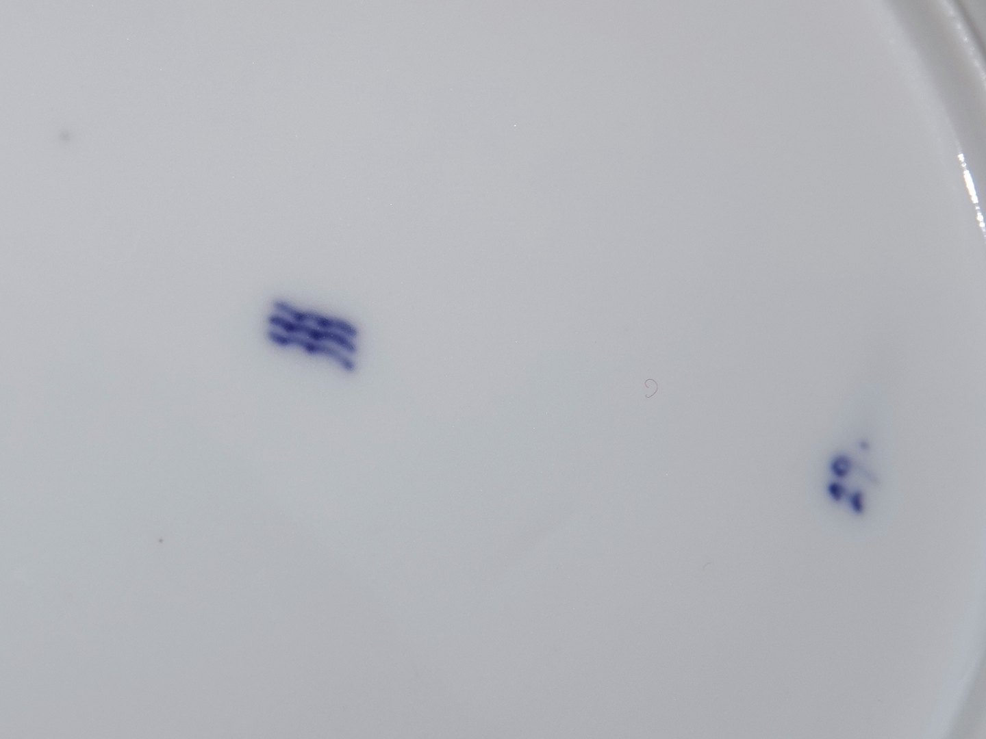 The gold edge has a lot of wear and one plate have chips on the stand point edges. Otherwise excellent condition.
