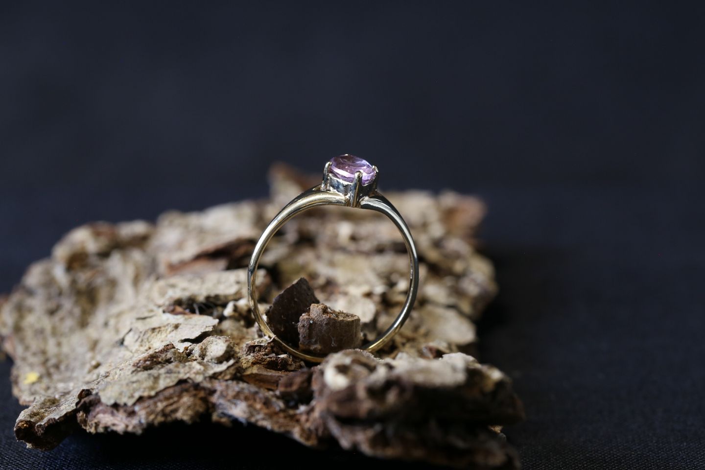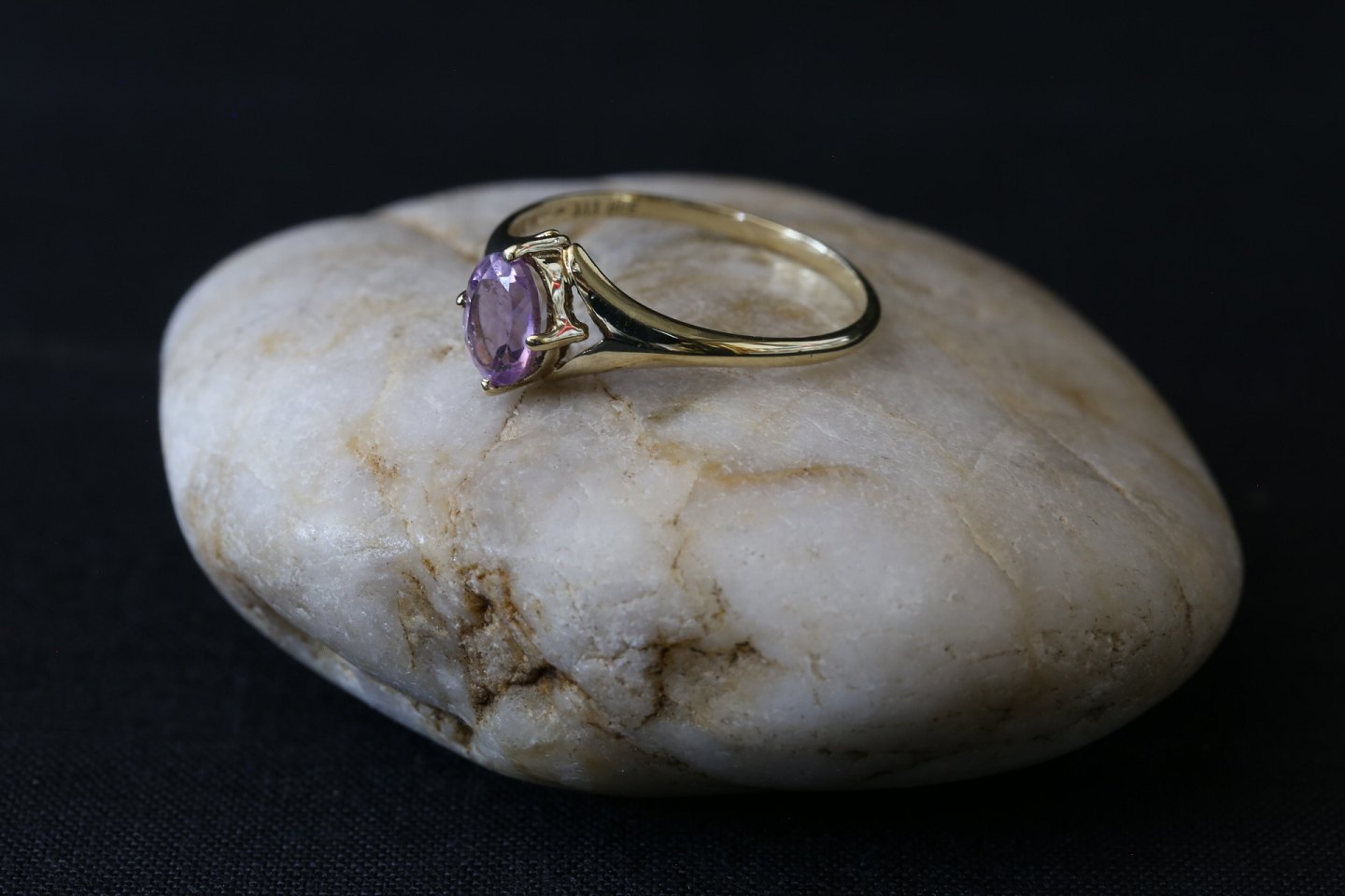 Flot guldring med lilla amatyst, udført i enkelt design. Den lille amatyst giver ringen liv, og fuldender ringens enkle design. Guldringe er flotte smykker der kan bruges til både hverdag og fest.