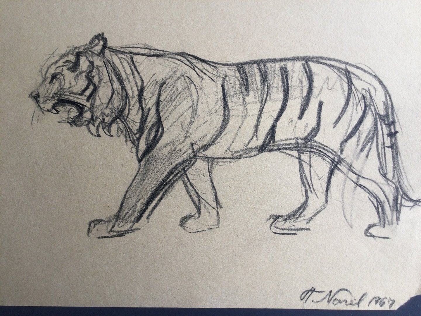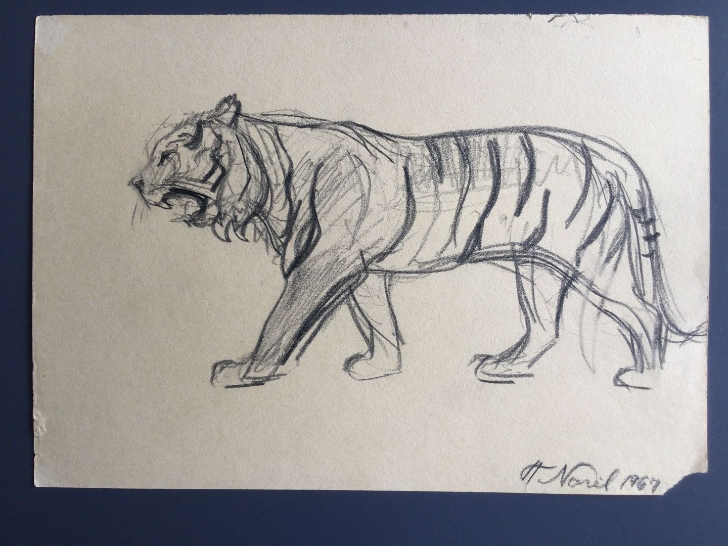 Tegning af Torkil Norél 1967 - Gående Tiger.