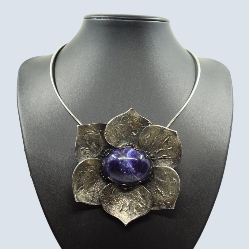 Birte Stenbak; Halsring i sterlingsølv med stor blomst