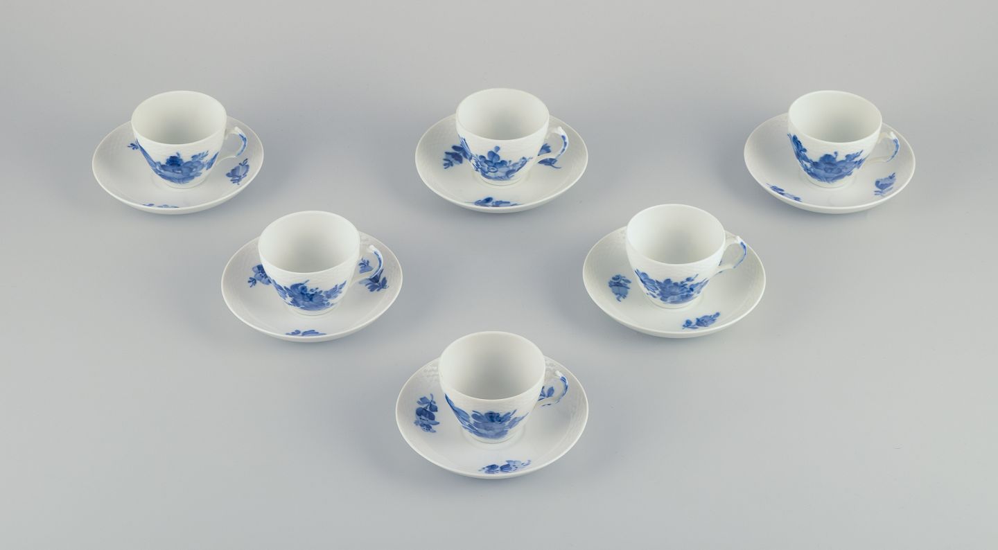 Royal Copenhagen Blå Blomst Flettet, seks kaffekopper med underkopper.
