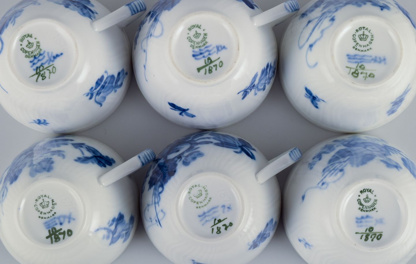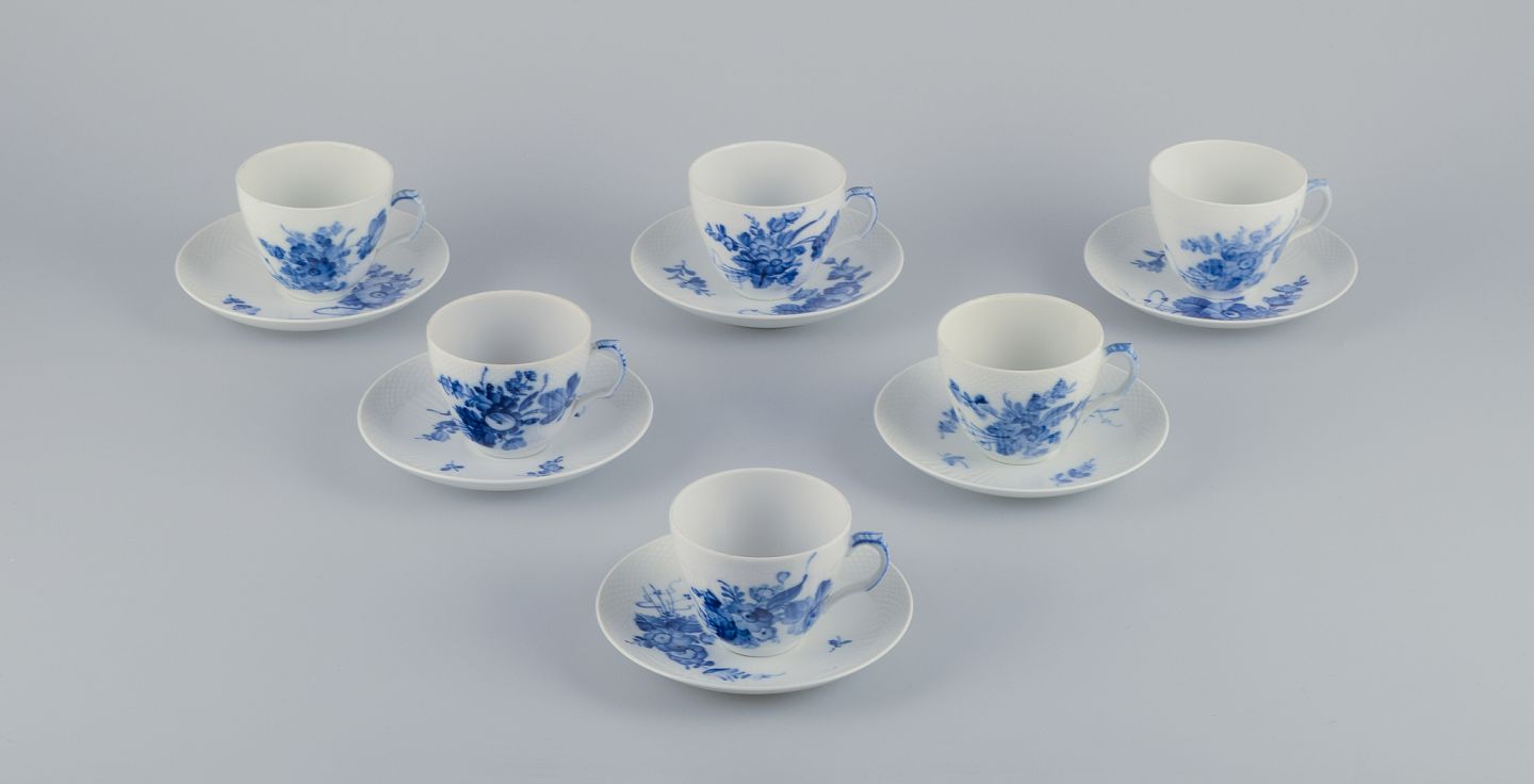Royal Copenhagen Blå Blomst Svejfet, seks kaffekopper med underkopper.