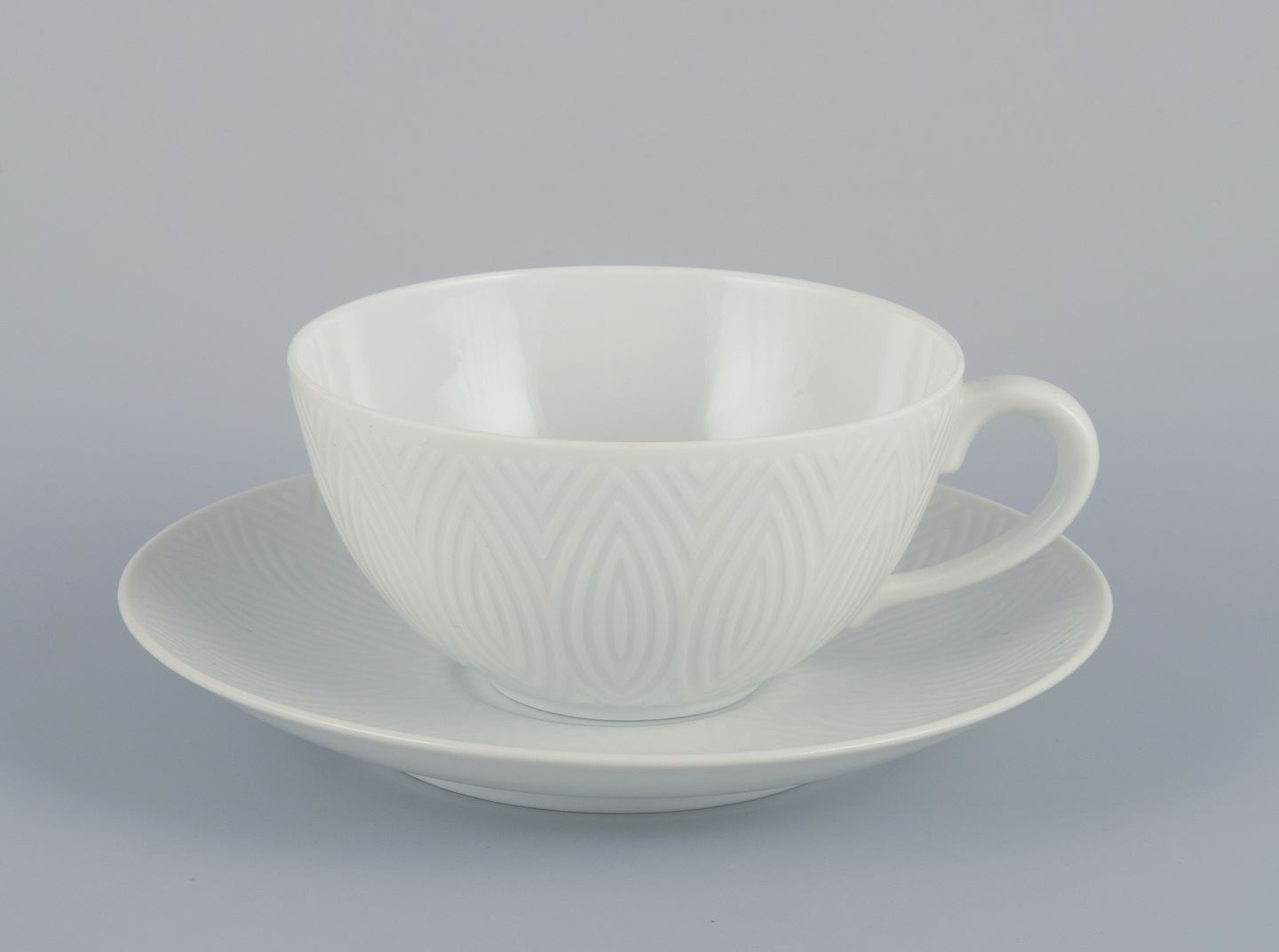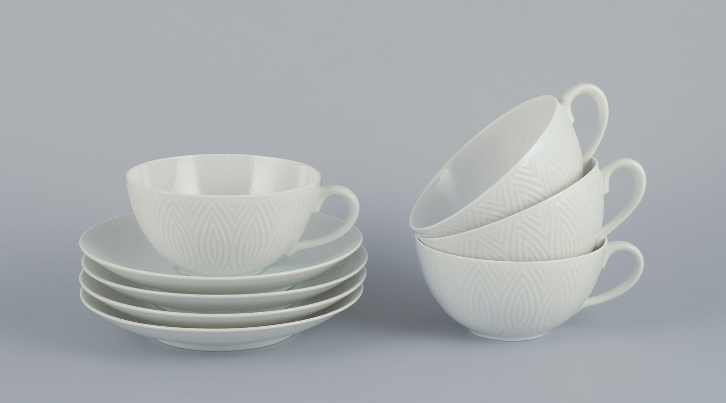 Axel Salto for Royal Copenhagen. Fire par tekopper i hvidt porcelæn.