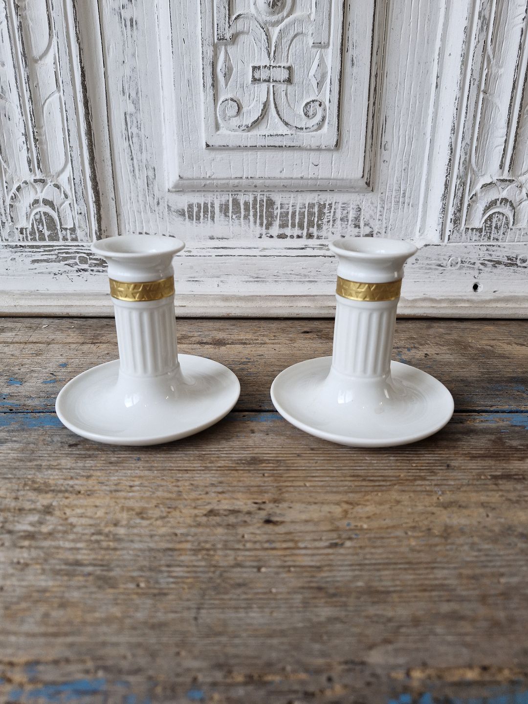 Royal Copenhagen par lysestager dekoreret med guld