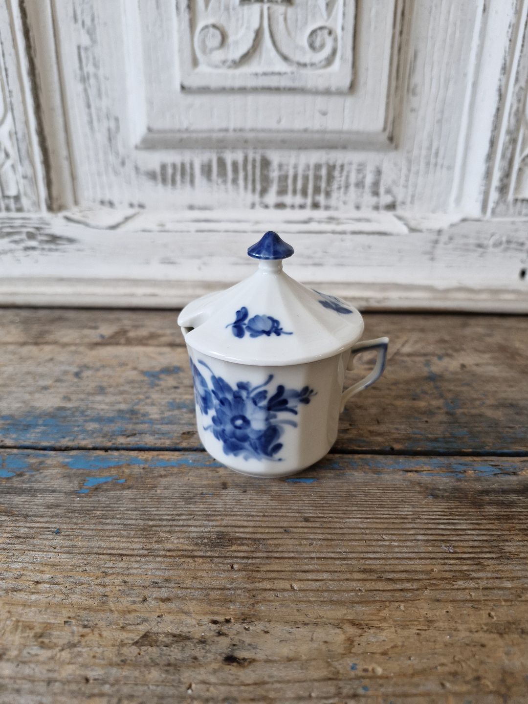 Royal Copenhagen Kantet Blå Blomst sennepskop no. 8586