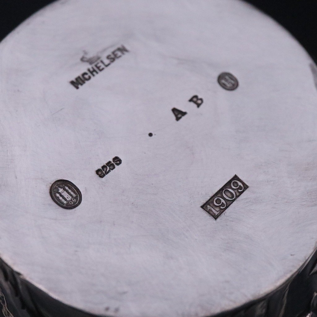 Stemplet med Michelsen stempler 925, three towers 09 og AB (Arne Bang) 1909.