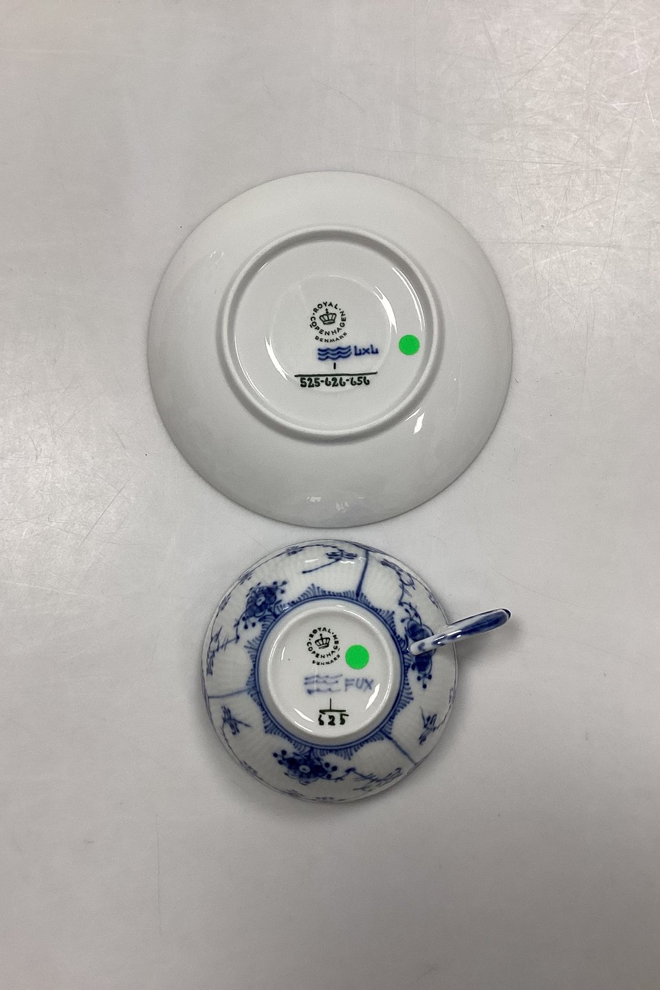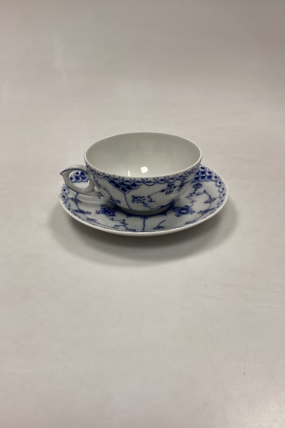 Royal Copenhagen Blue Fluted Half Lace Tea Cup and Saucer No. 525