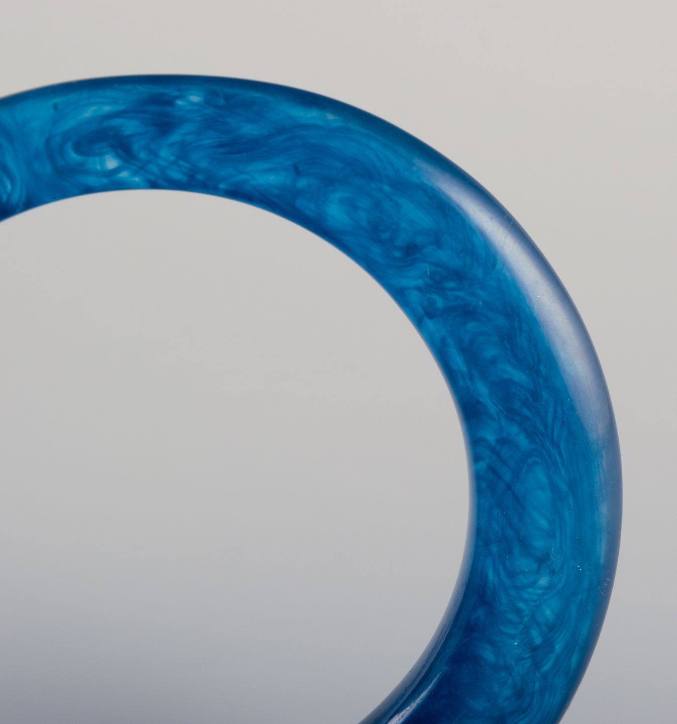 Tre armbånd i blåt plast.